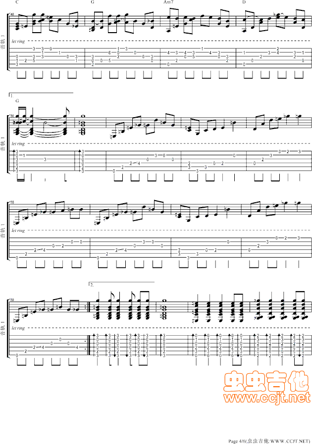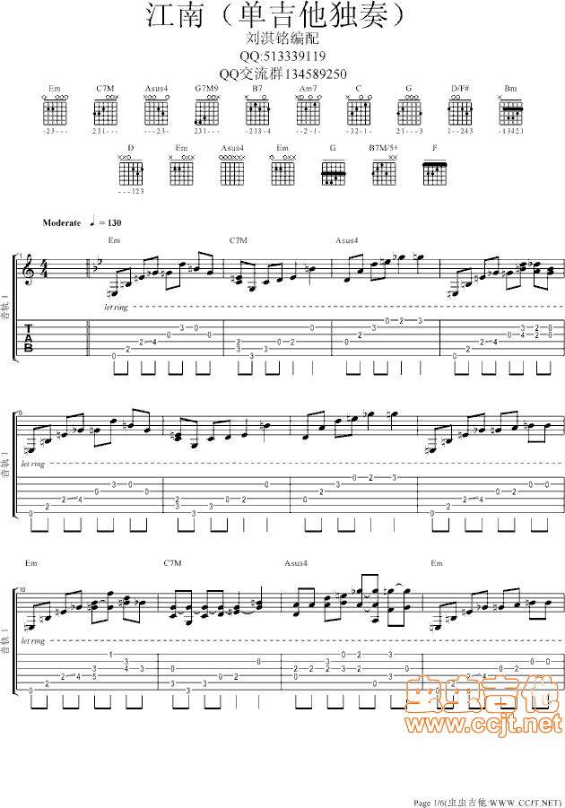 曲谱介绍: 《江南()》吉他独奏谱,共有6张高清图谱。