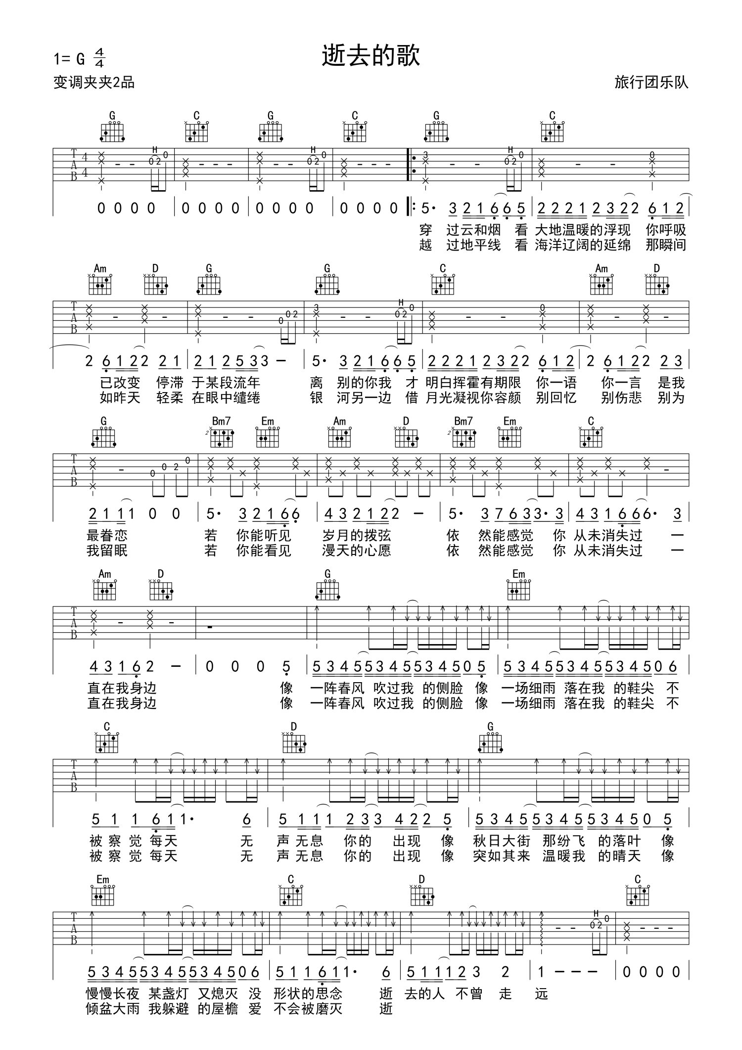 • 逝去的歌吉他谱 - 旅行团乐队 - G调吉他弹唱谱第1张