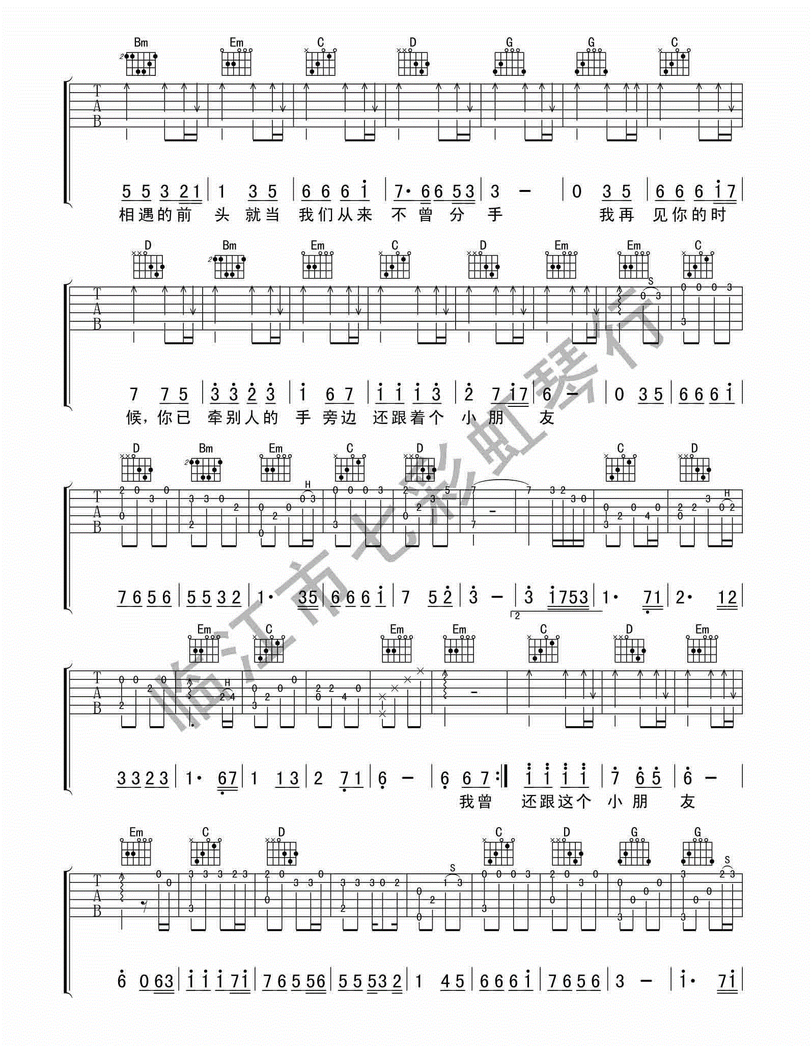 当前位置:琴谱网>吉他弹唱>一亿个伤心 蒙面哥 G调六线