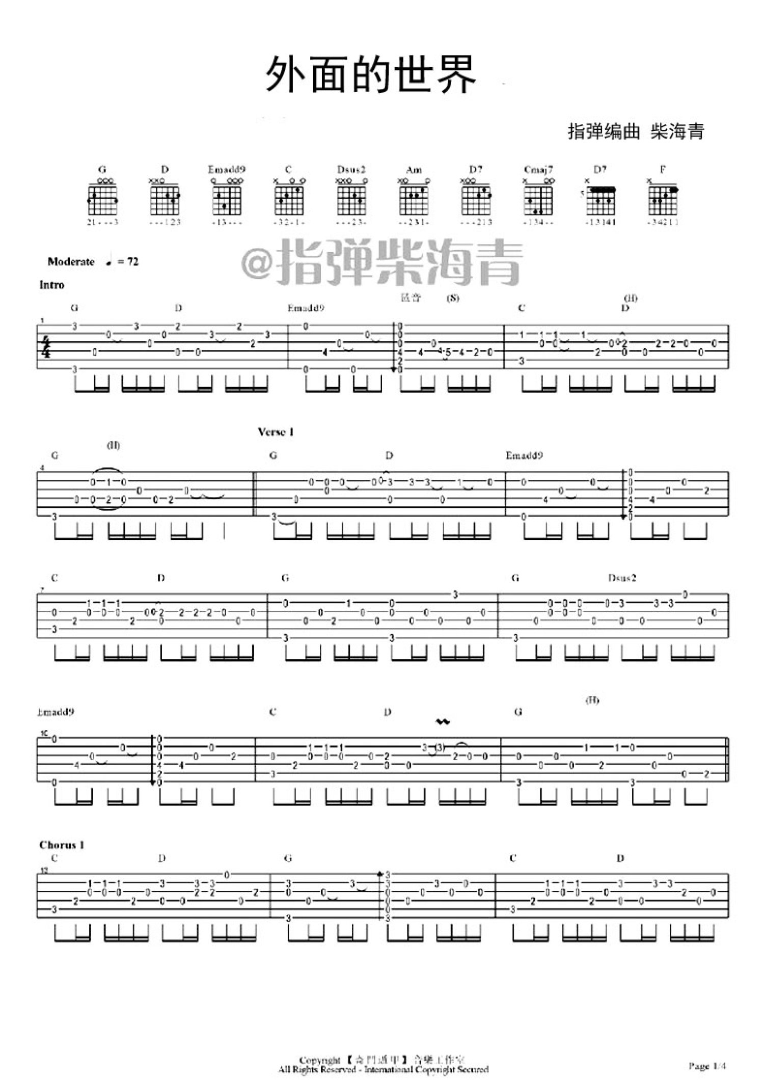 外面的世界吉他谱 - 柴海青 - 吉他独奏谱