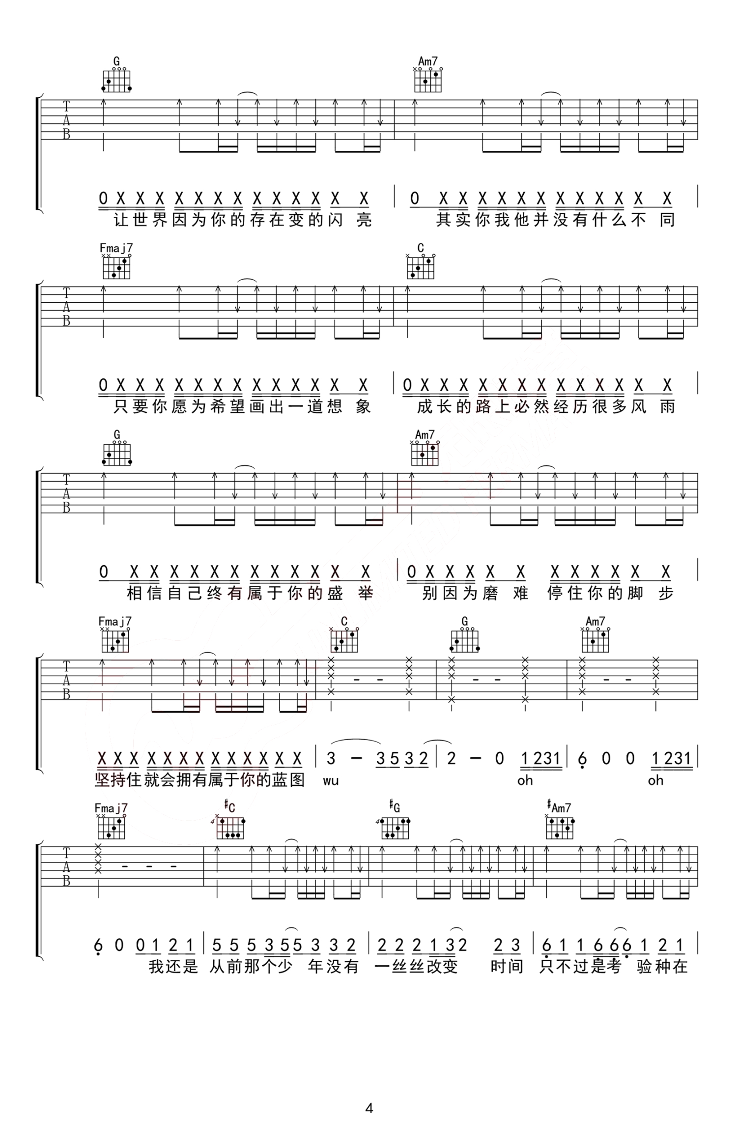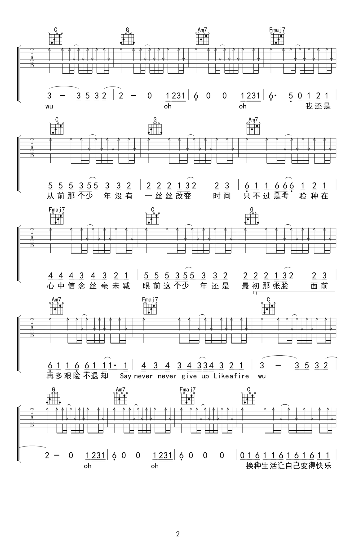 吉他弹唱C调来源:无限延音17811 浏览2020-03-28 16:47发布图谱共5页