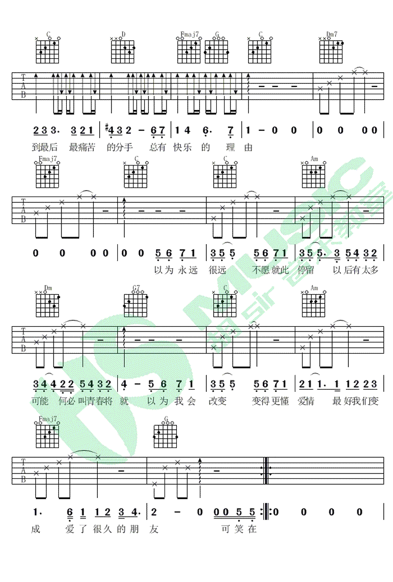 当前位置:琴谱网>吉他弹唱>爱了很久的朋友 田馥甄 C调简单版