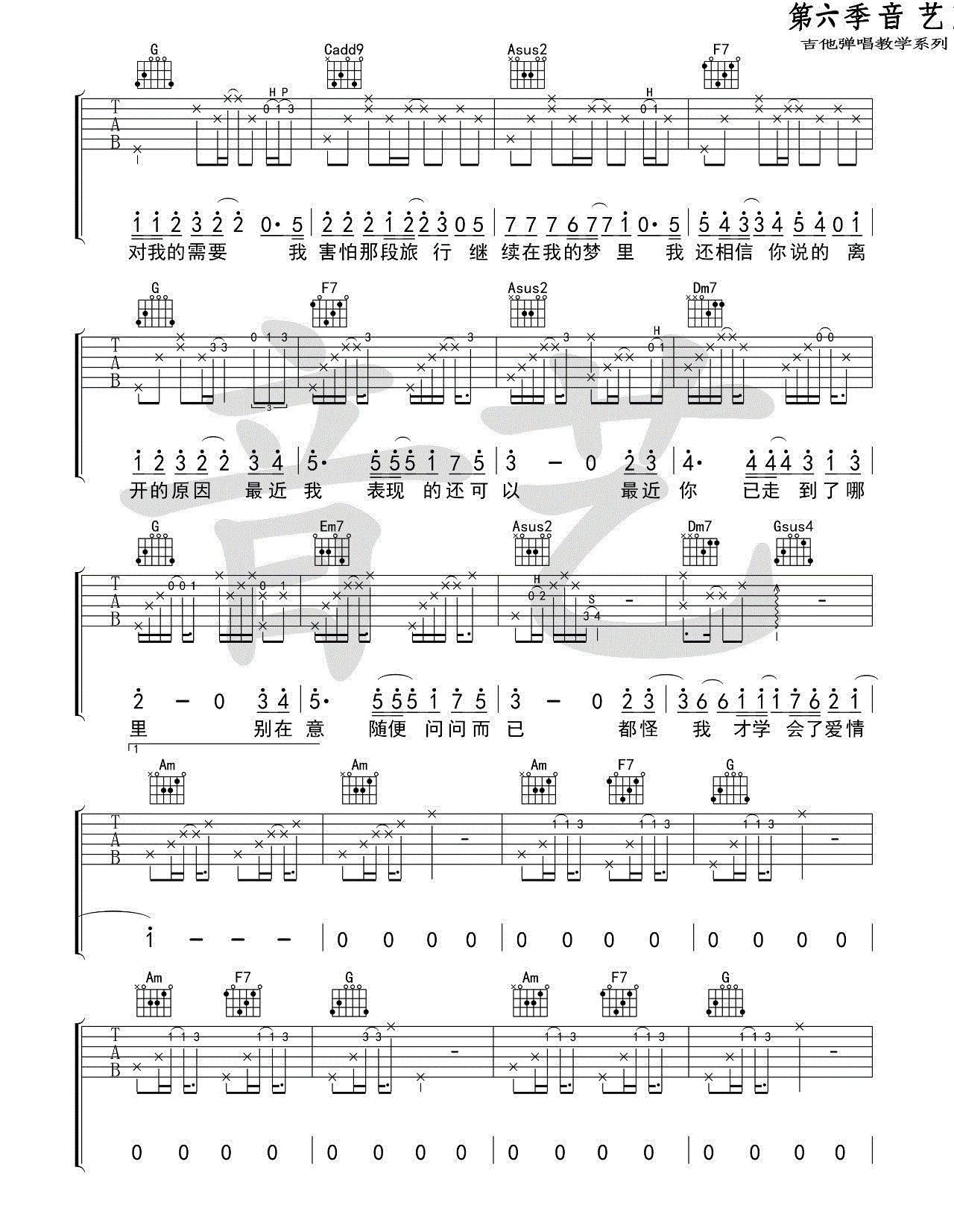 当前位置:琴谱网>吉他弹唱>我害怕 薛之谦 C调六线