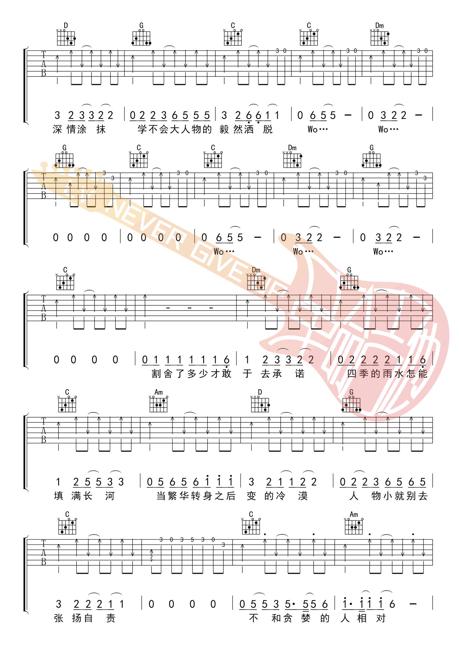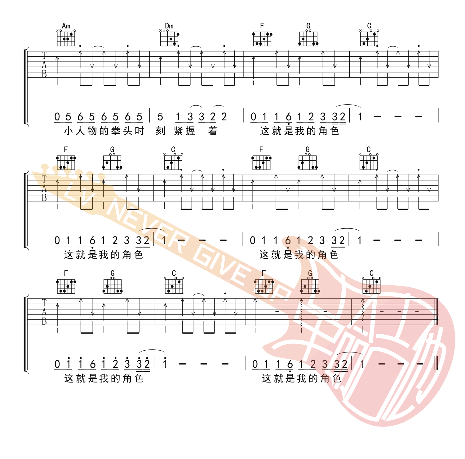 当前位置:琴谱网>吉他弹唱>小人物 赵雷 C调指法六线