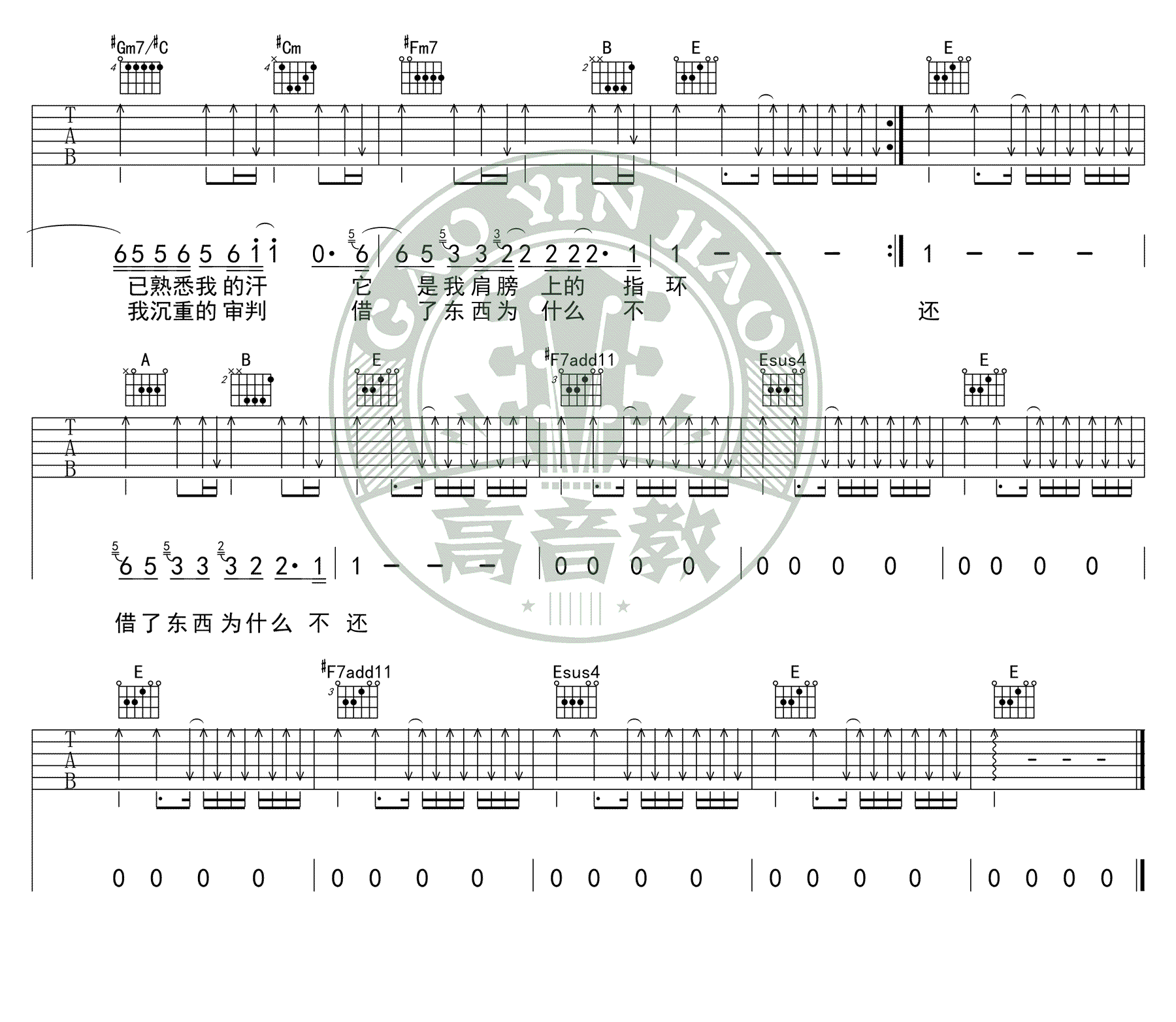当前位置:琴谱网>吉他弹唱>你的背包 陈奕迅 E调图片