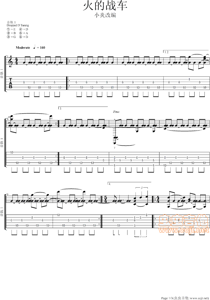 火战车吉他谱 - 伦敦奥运会 - 吉他独奏谱