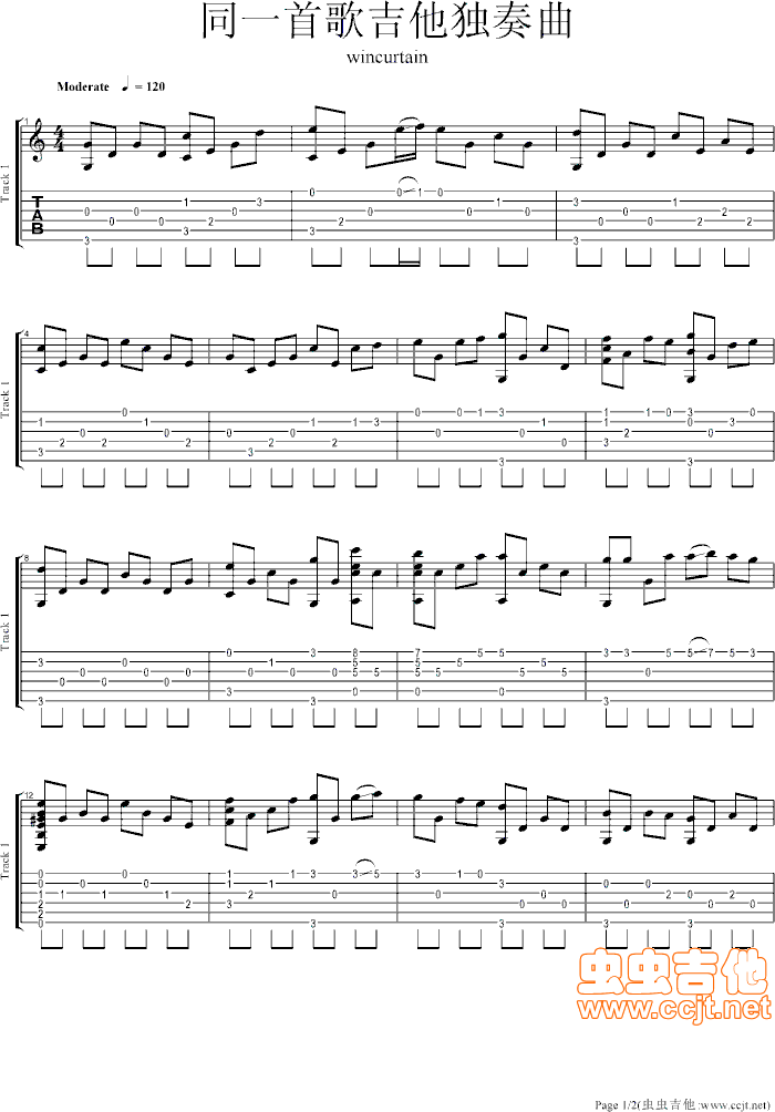 同一首歌吉他曲吉他谱 - 吉他独奏谱