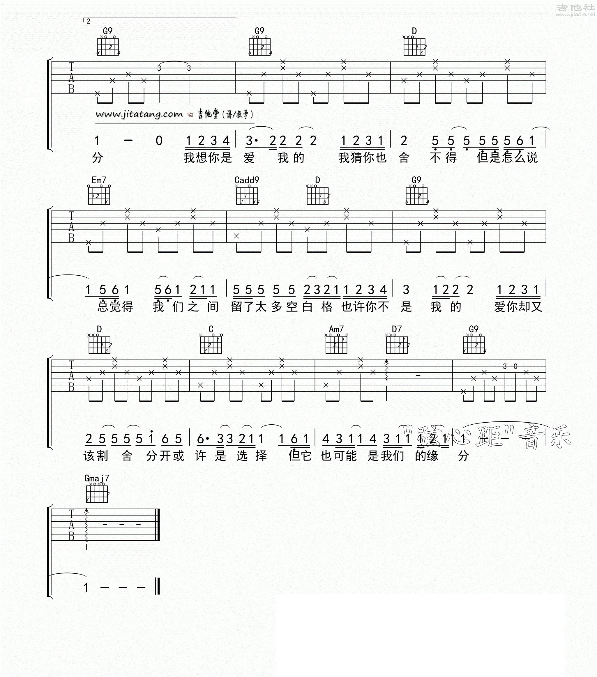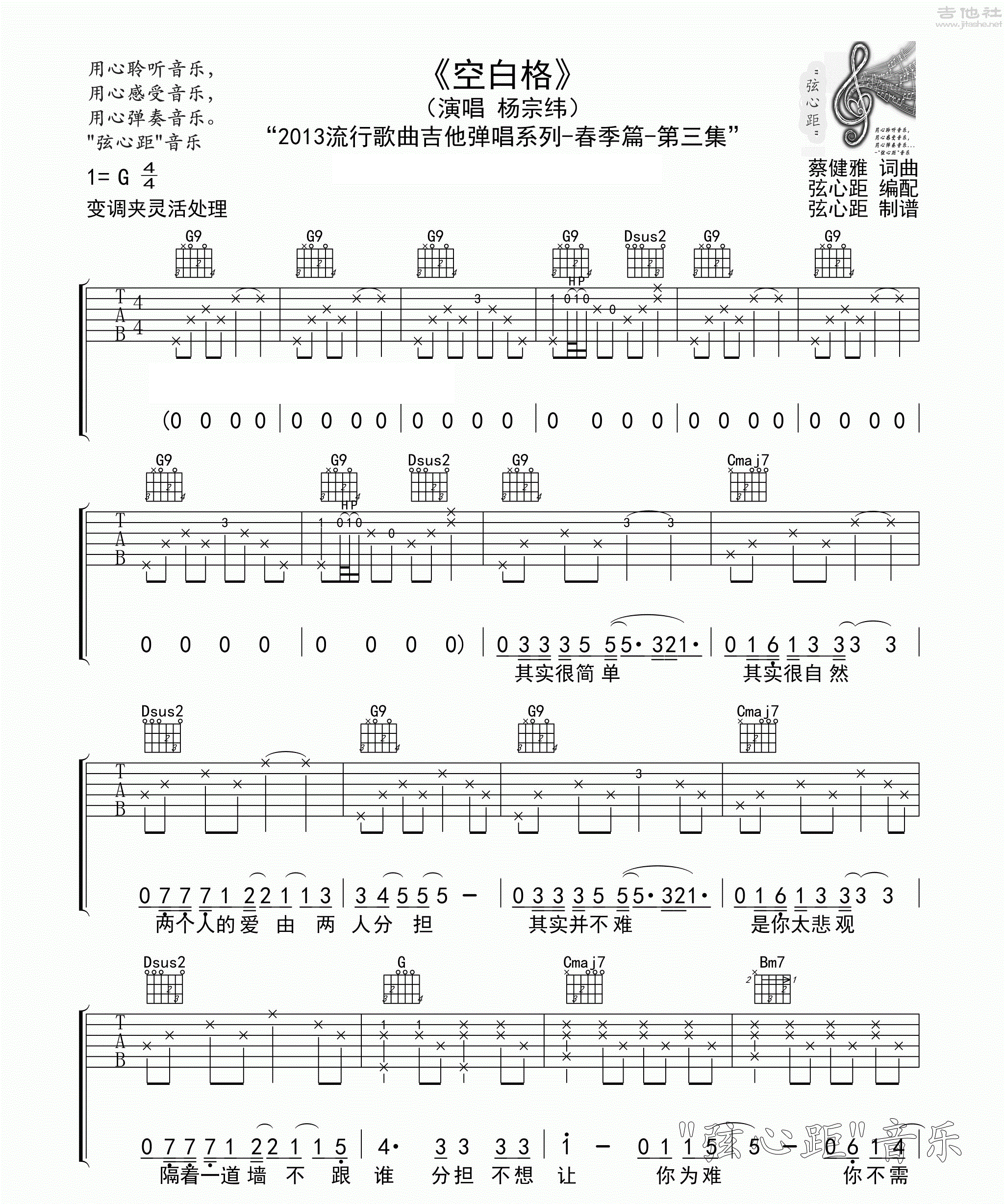 空白格 杨宗纬 G调六线吉他谱 - 空白格 - G调吉他弹唱谱