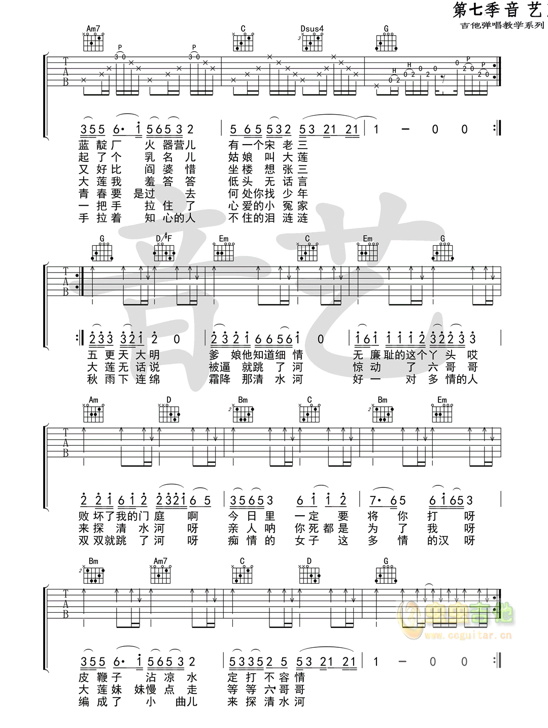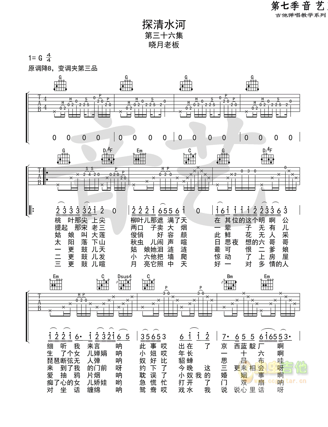 探清水河 晓月老板 图片吉他谱 - 探清水河 - 吉他弹唱谱