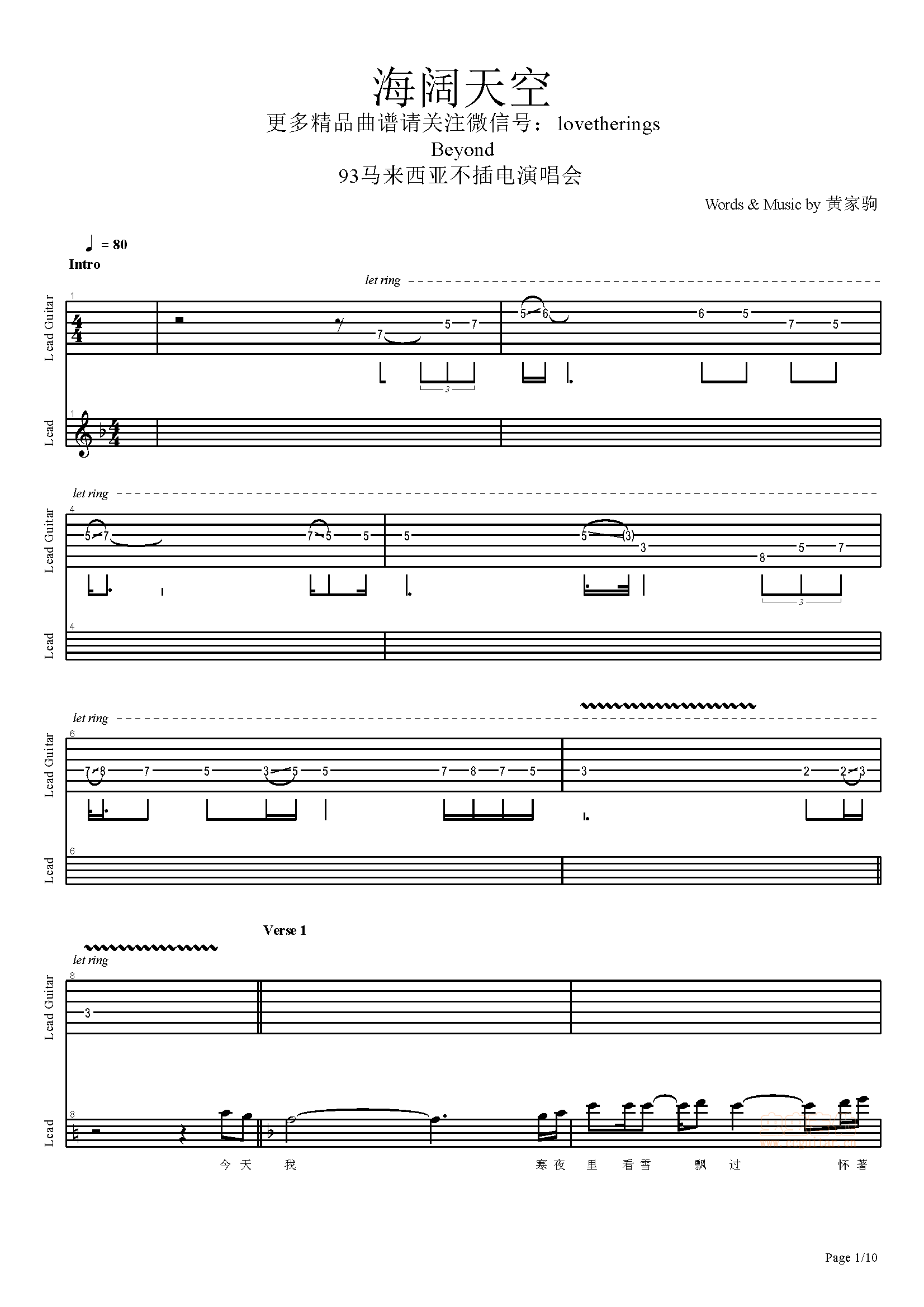 当前位置:琴谱网>吉他弹唱>海阔天空 BEYOND 图片