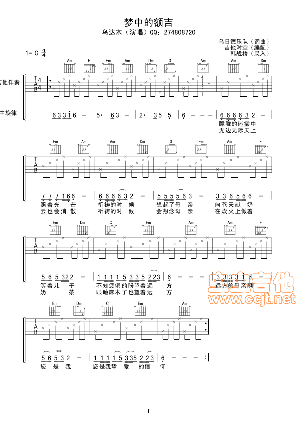 梦中的额吉 乌达木 图片吉他谱 - 梦中的额吉 - 吉他弹唱谱
