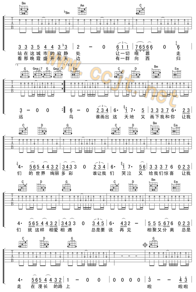 曲谱介绍: 《旅行》吉他弹唱谱,共有3张高清图谱。