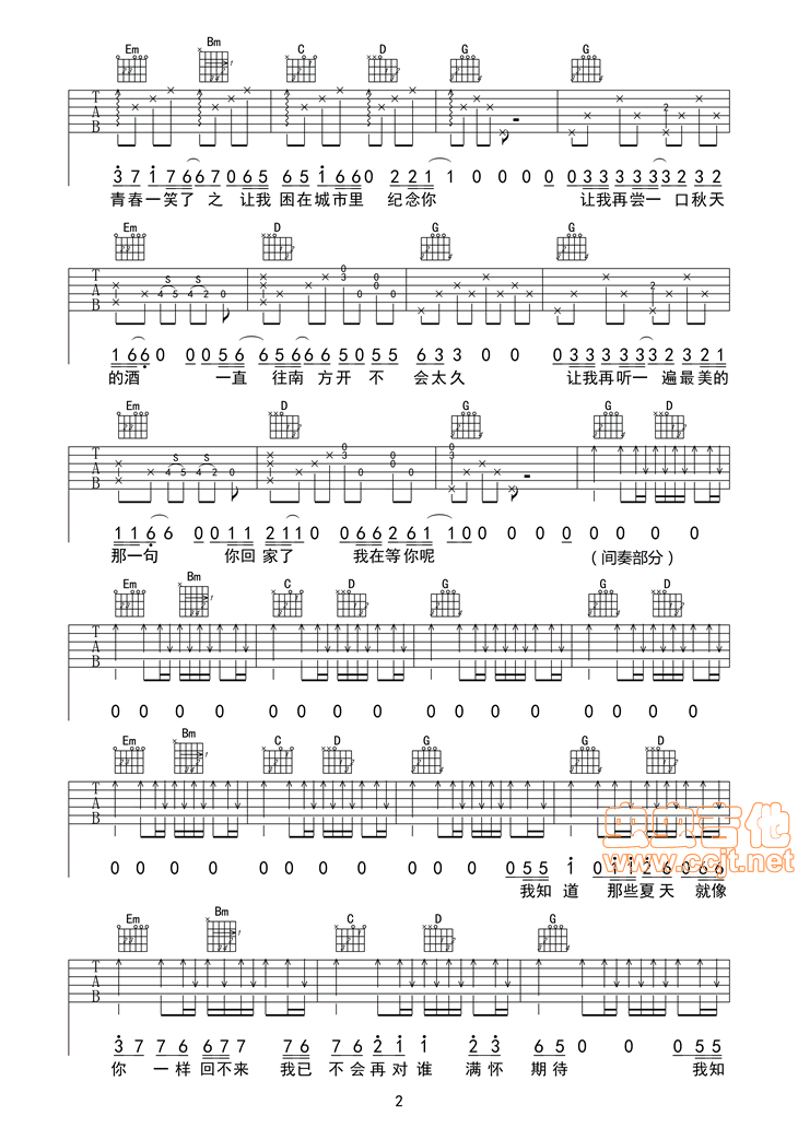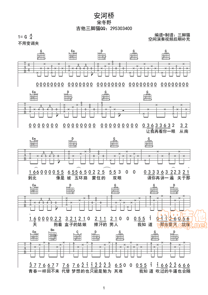 安河桥 宋东野吉他谱 - 安河桥 - 吉他弹唱谱