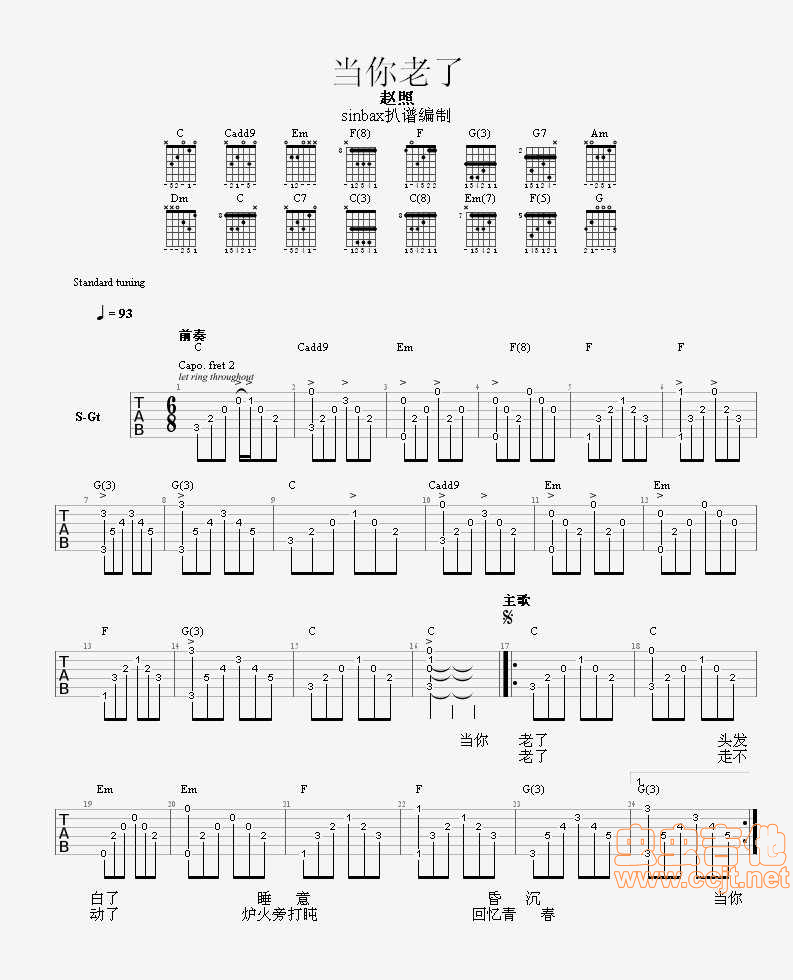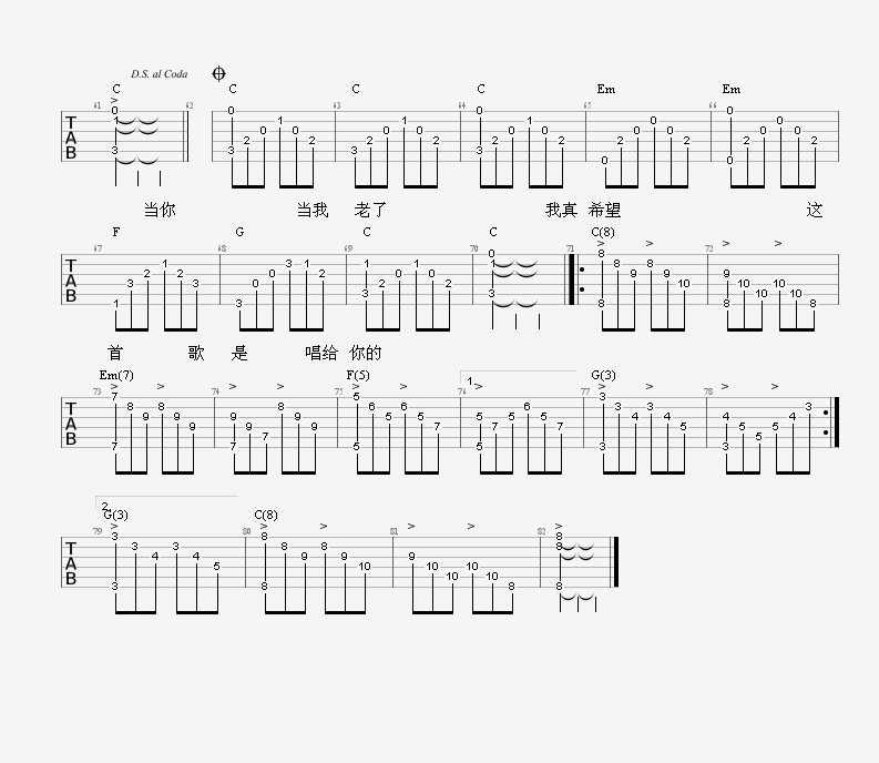 当前位置:琴谱网>吉他弹唱>当你老了 赵照 图片