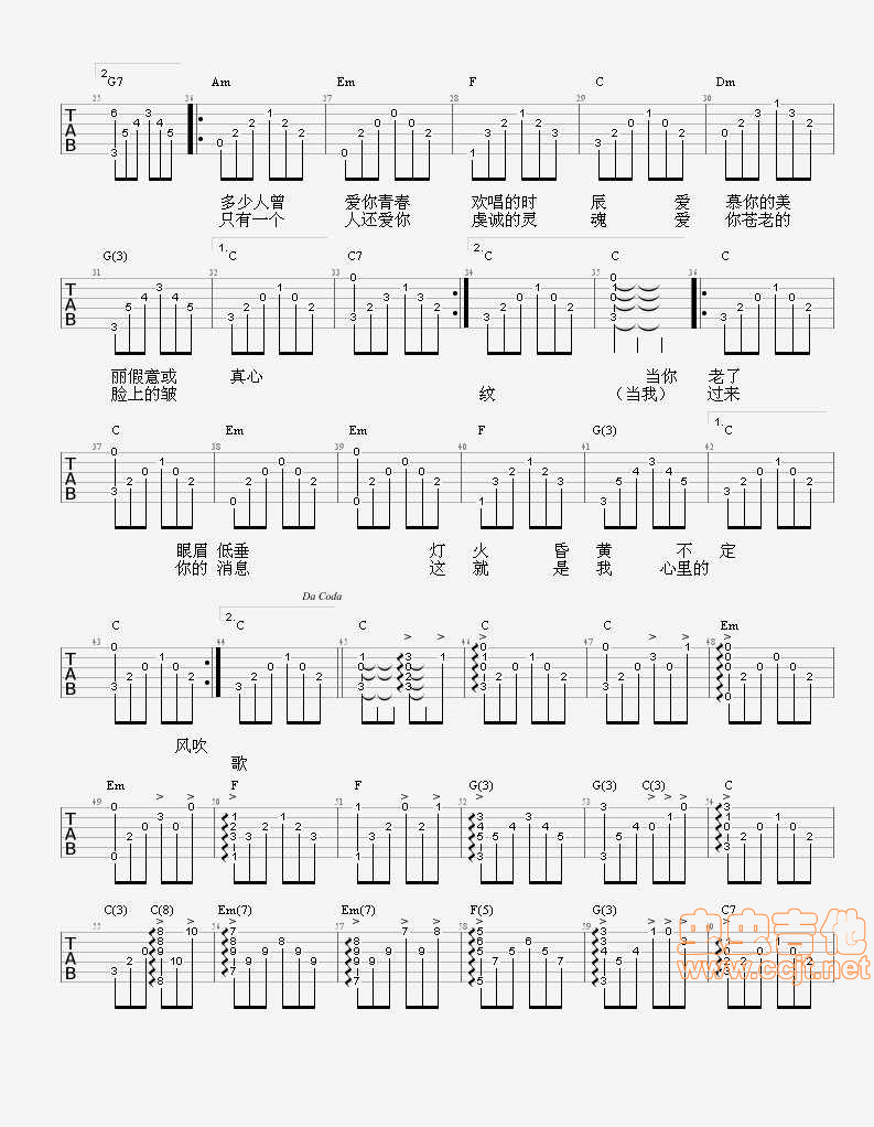 当你老了 赵照 图片吉他谱 - 当你老了 - 吉他弹唱谱