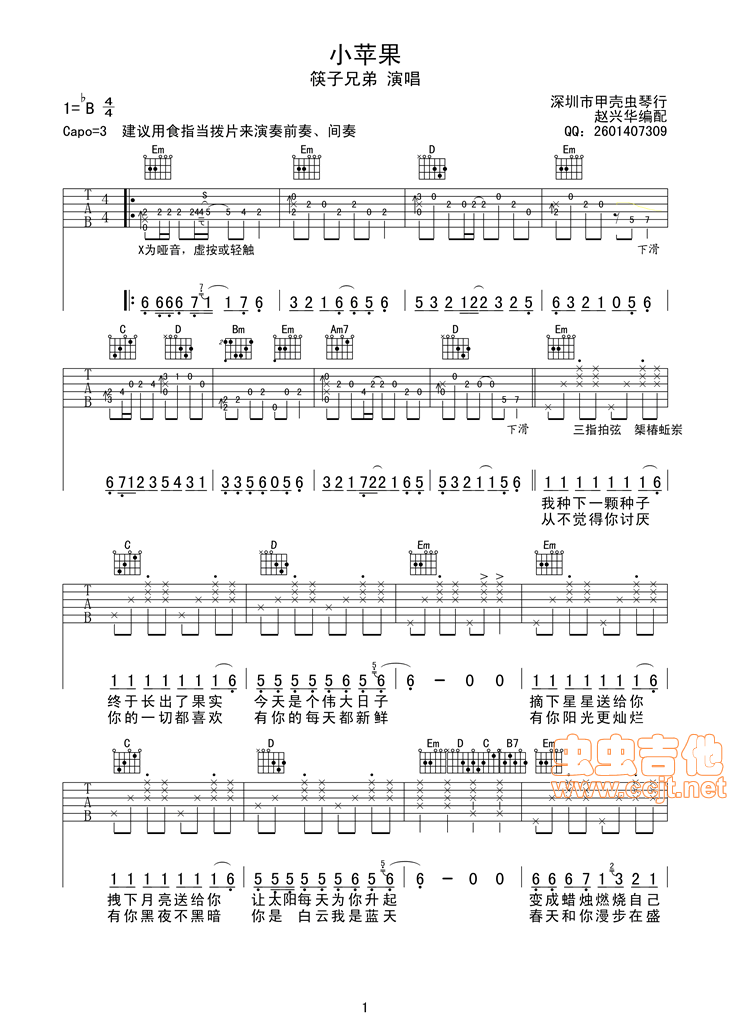 当前位置:琴谱网>吉他弹唱>小苹果