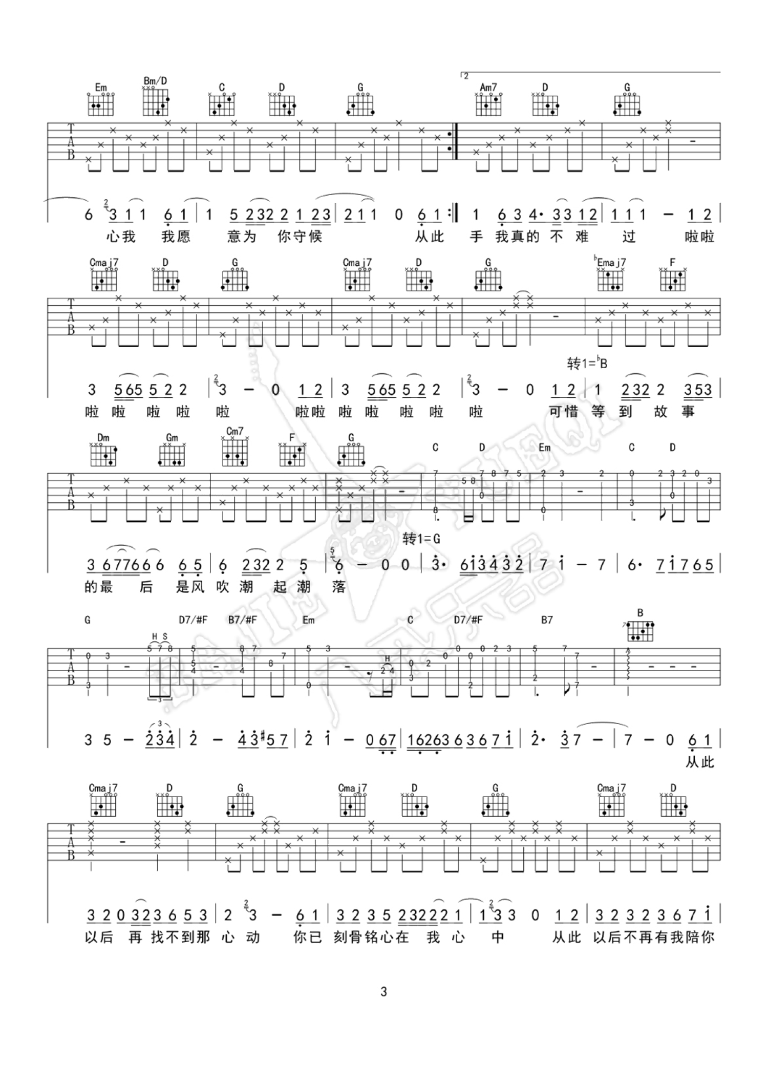 吉他弹唱G调来源:八戒乐器1057 浏览2018-03-19 13:34发布图谱共4页