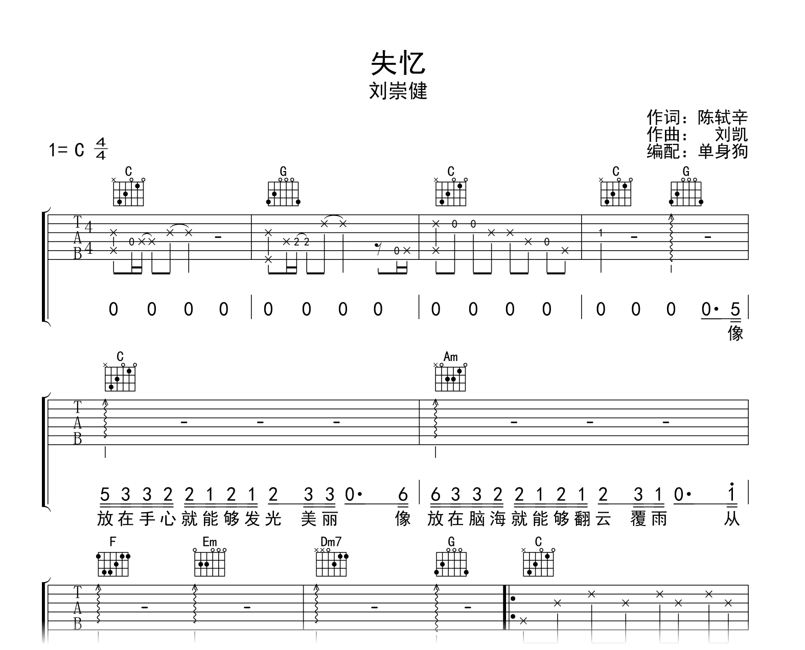 失忆吉他谱 - 刘崇健 - C调吉他弹唱谱