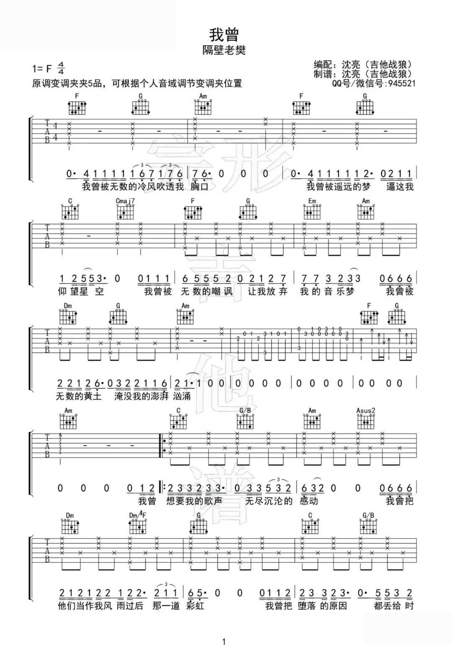 曲谱介绍: 隔壁老樊《我曾》吉他谱_C调吉他弹唱谱