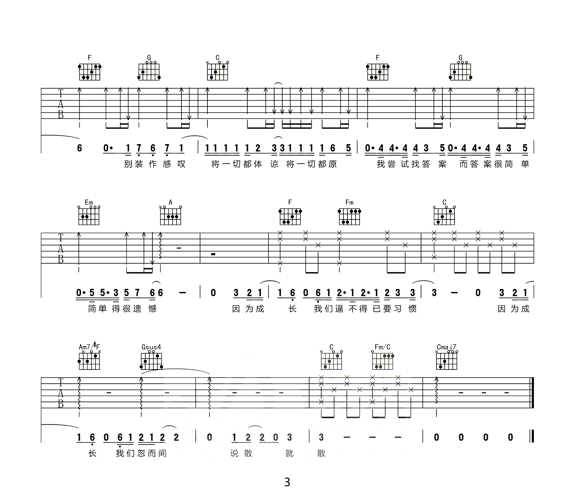 说散就散吉他谱 - 袁娅维 - C调吉他弹唱谱 - 原版
