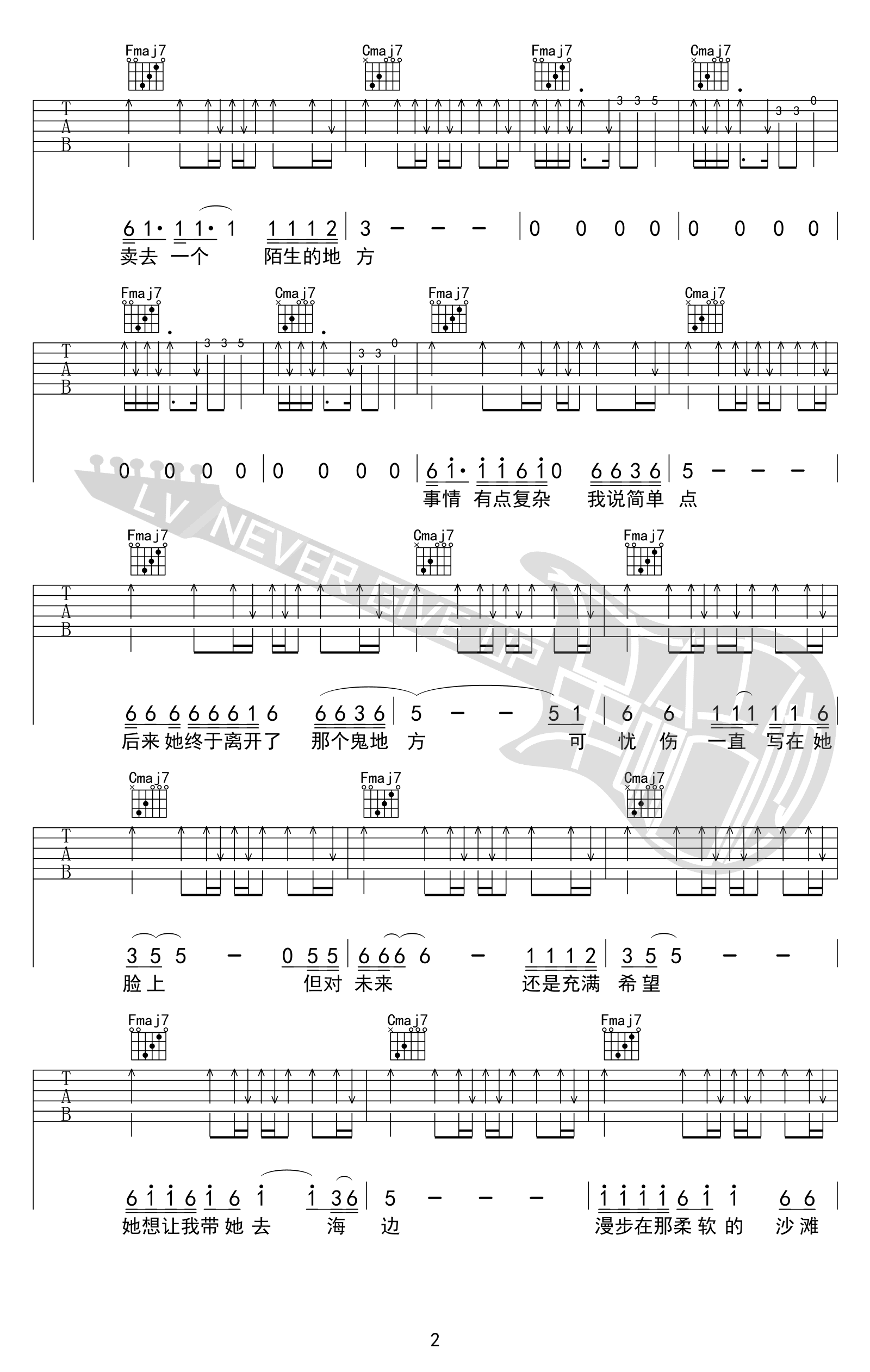 曲谱介绍: 五条人《梦幻丽莎发廊》吉他弹唱谱,共有4张高清图谱。