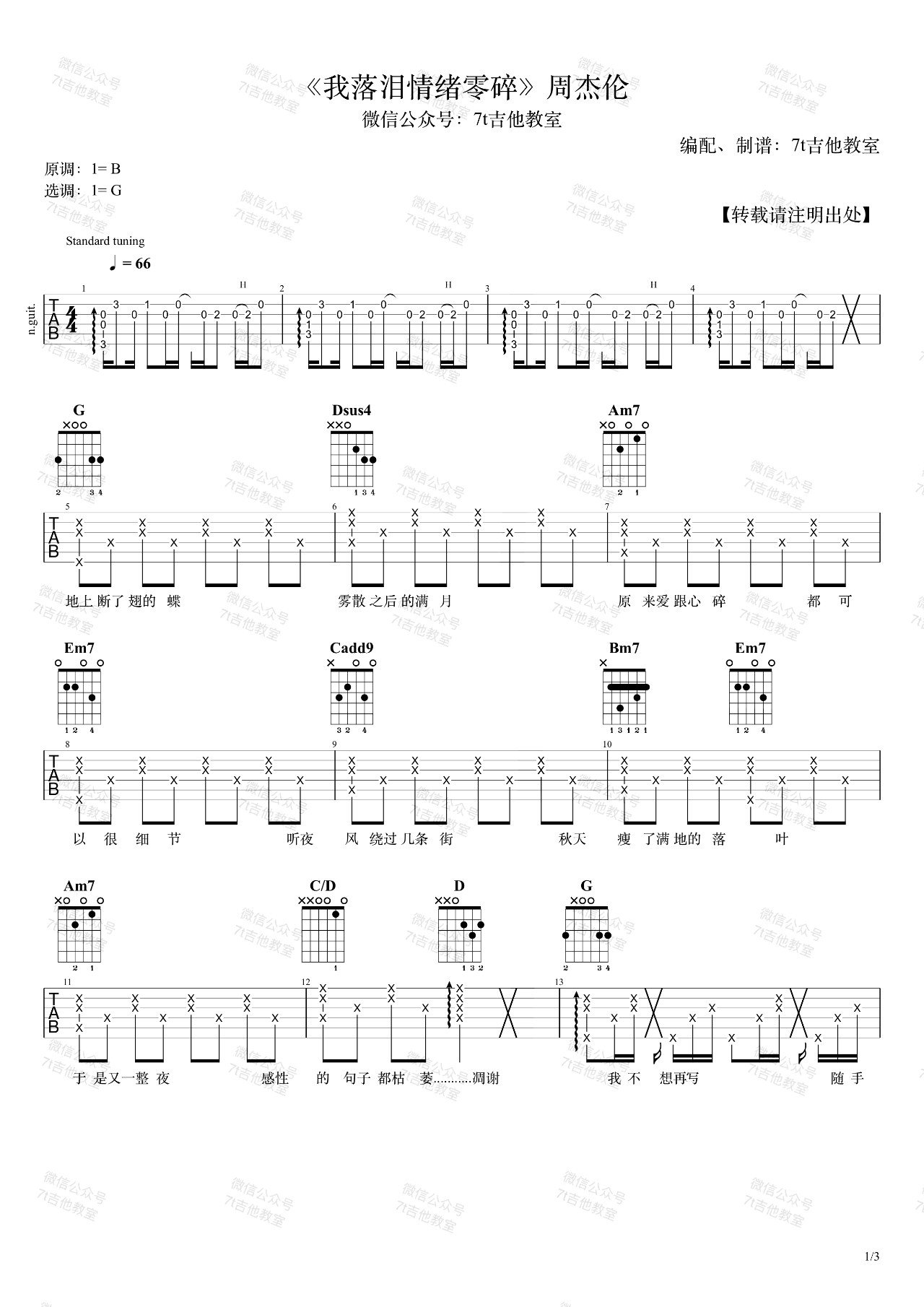 曲谱介绍: 周杰伦《我落泪情绪零碎》吉他弹唱谱,共有3张高清图谱。