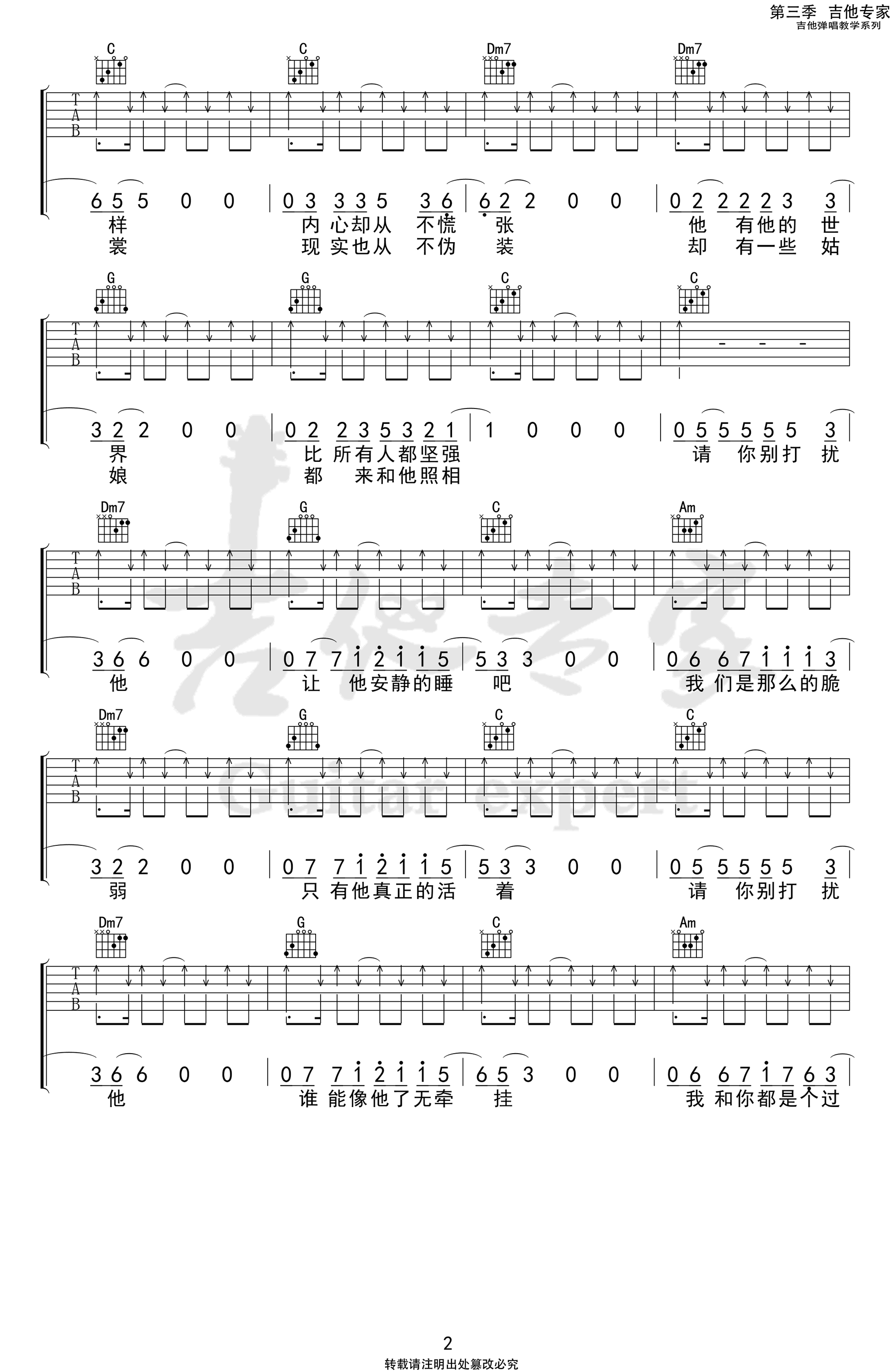 别打扰他吉他谱 - 贰佰 - 吉他弹唱谱