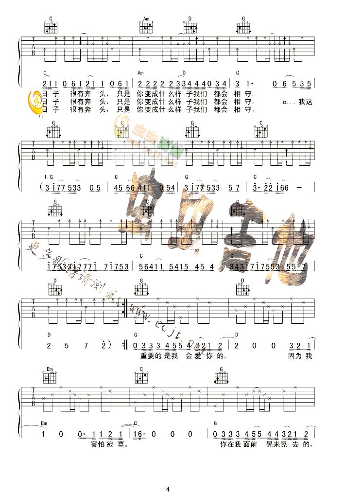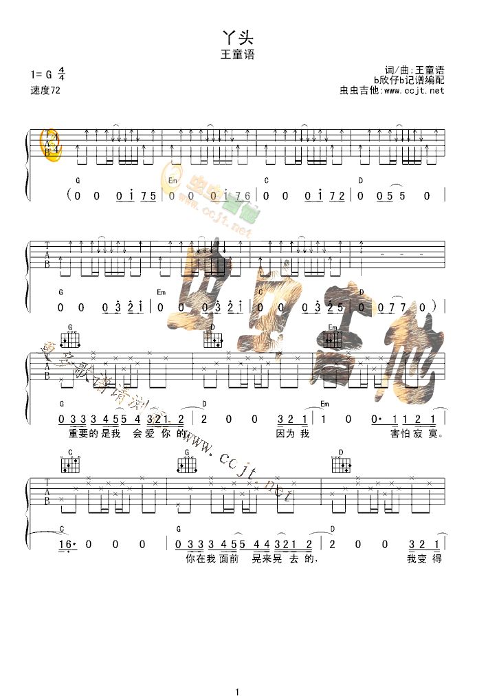 曲谱介绍: 《丫头》吉他弹唱谱,共有5张高清图谱。