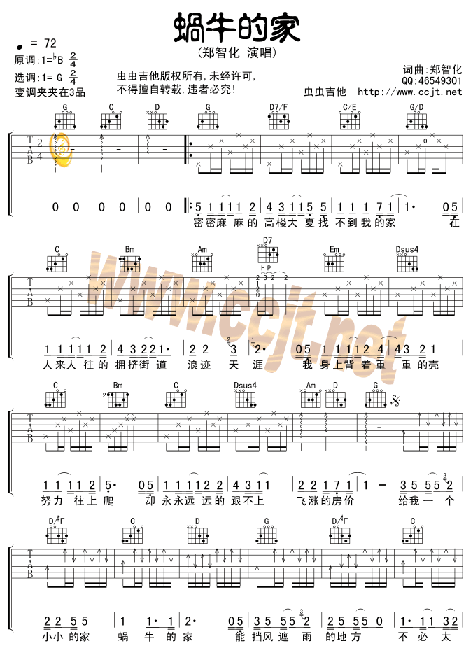 蜗牛的家吉他谱 - 吉他弹唱谱