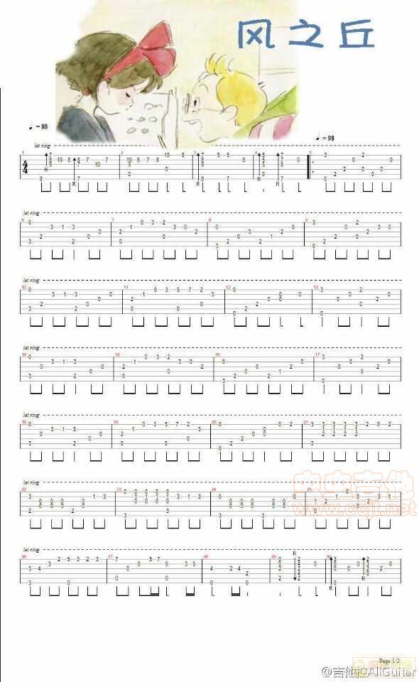 曲谱介绍: 《风之丘》吉他弹唱谱,共有2张高清图谱,免翻页排版设计。