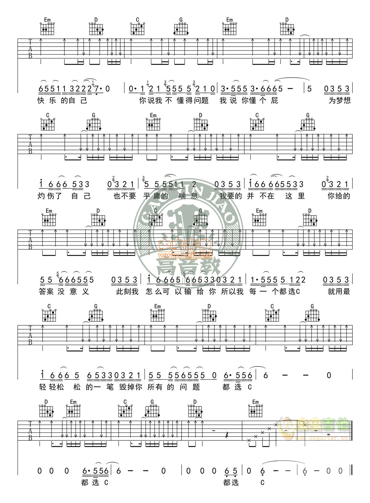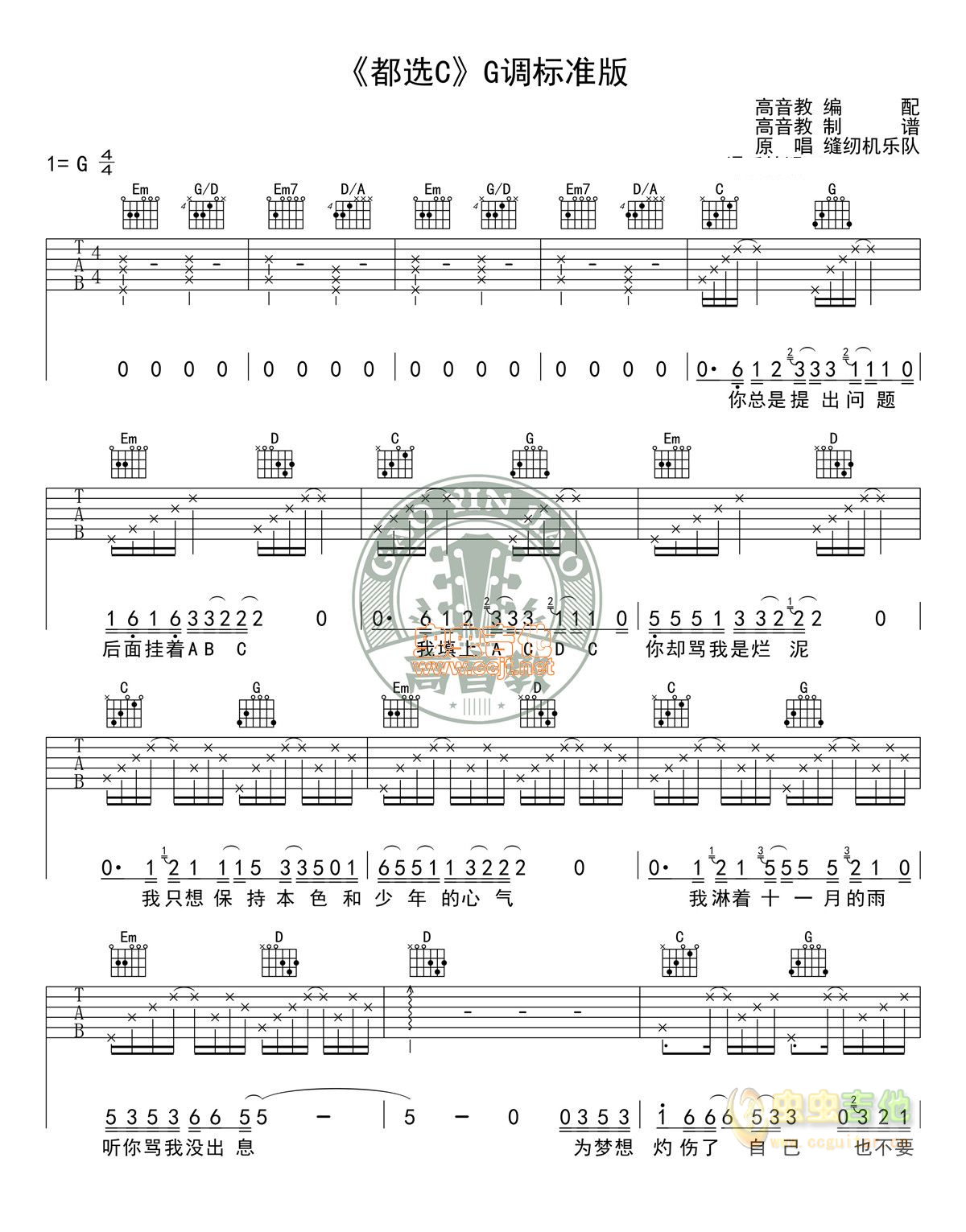 都选C 缝纫机乐队 图片吉他谱 - 都选C - 吉他弹唱谱