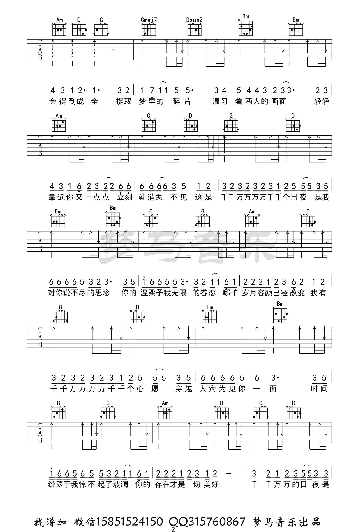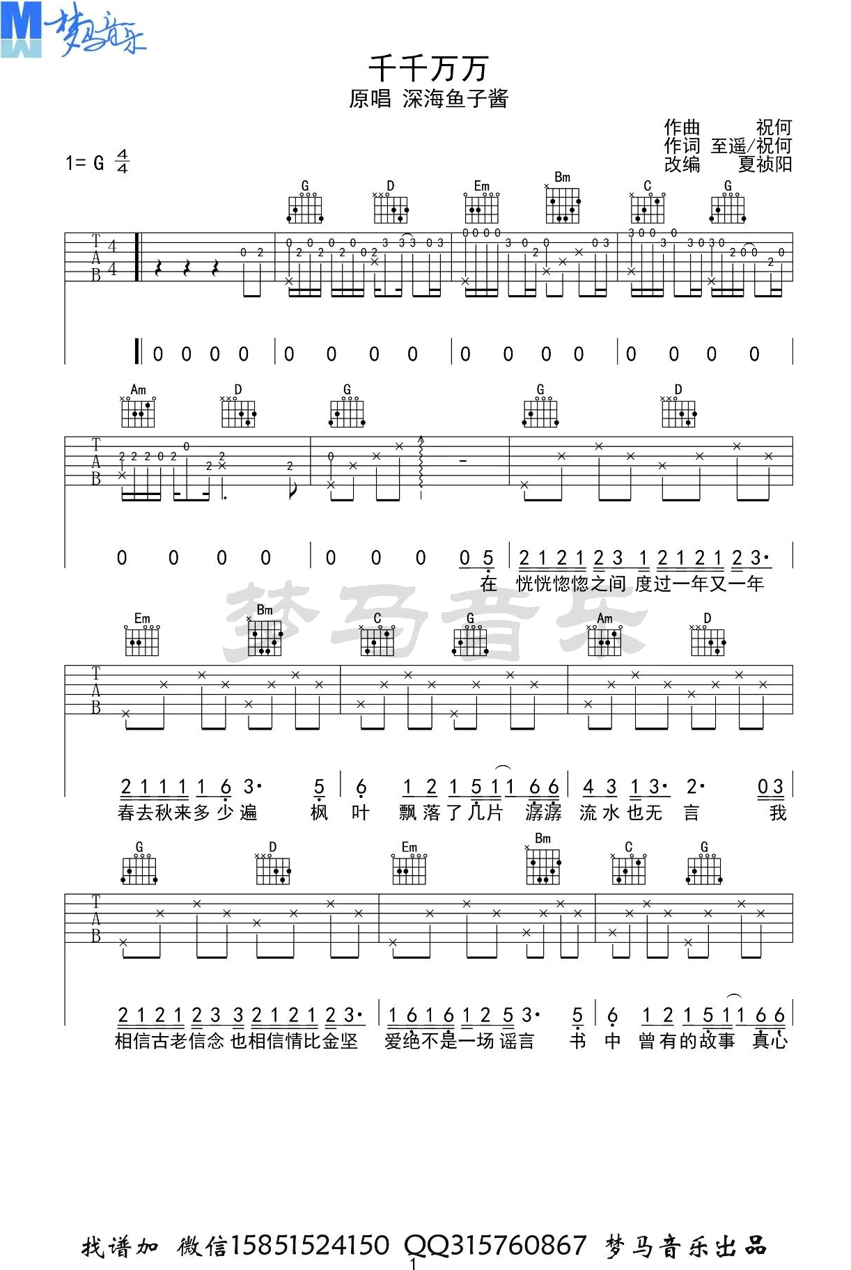 曲谱介绍: 深海鱼子酱《千千万万》吉他弹唱谱,共有3张高清图谱。