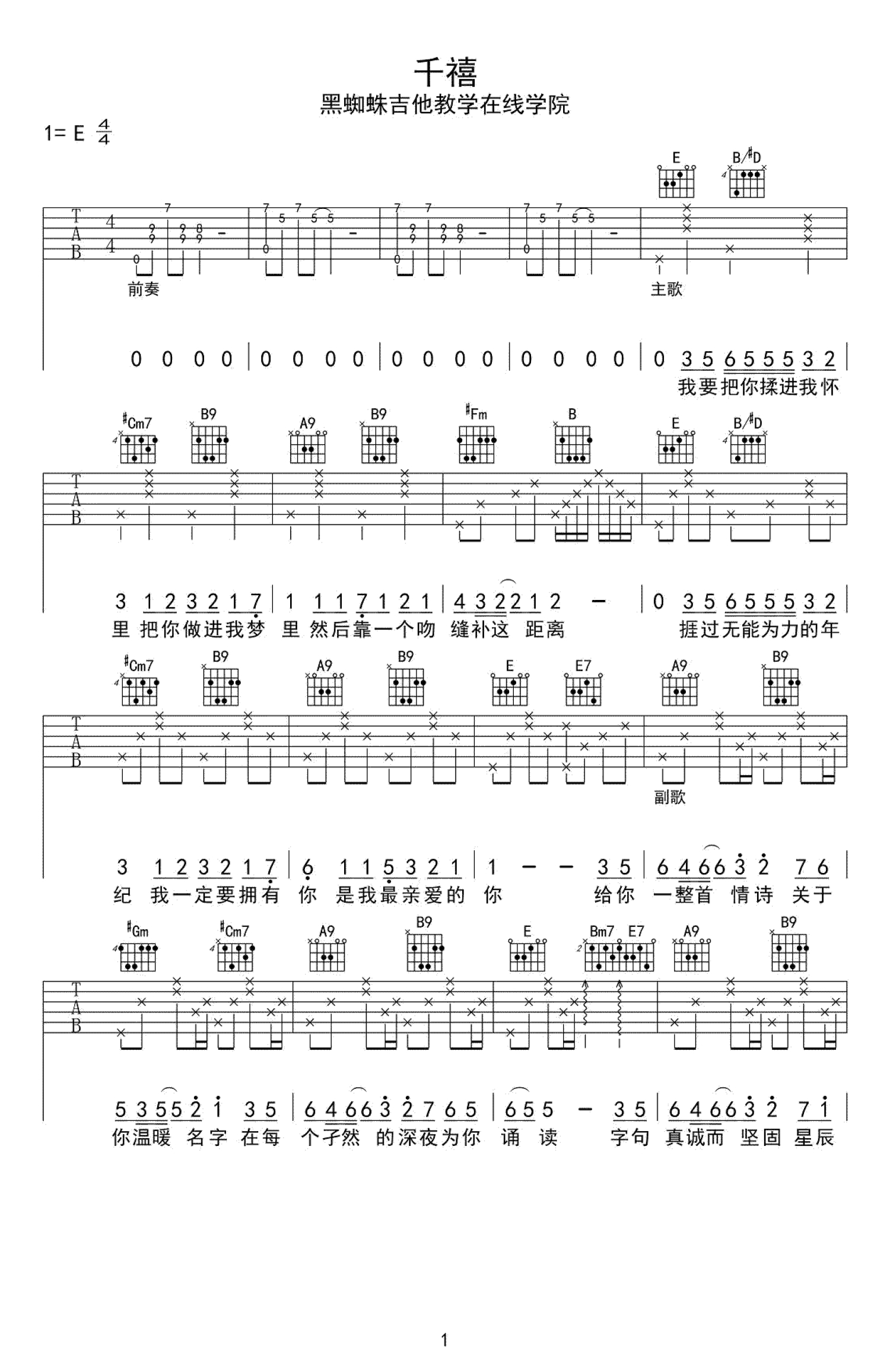 千禧吉他谱 - 徐秉龙 - E调吉他弹唱谱