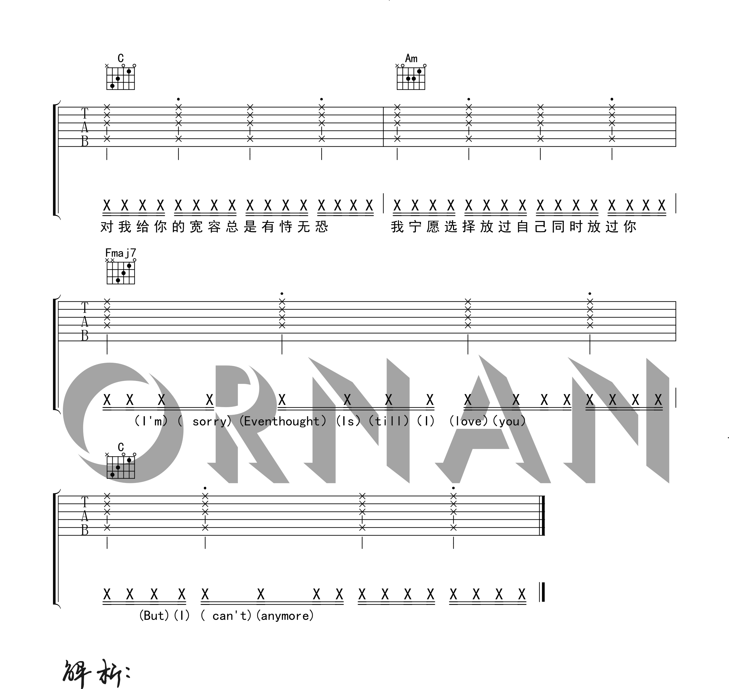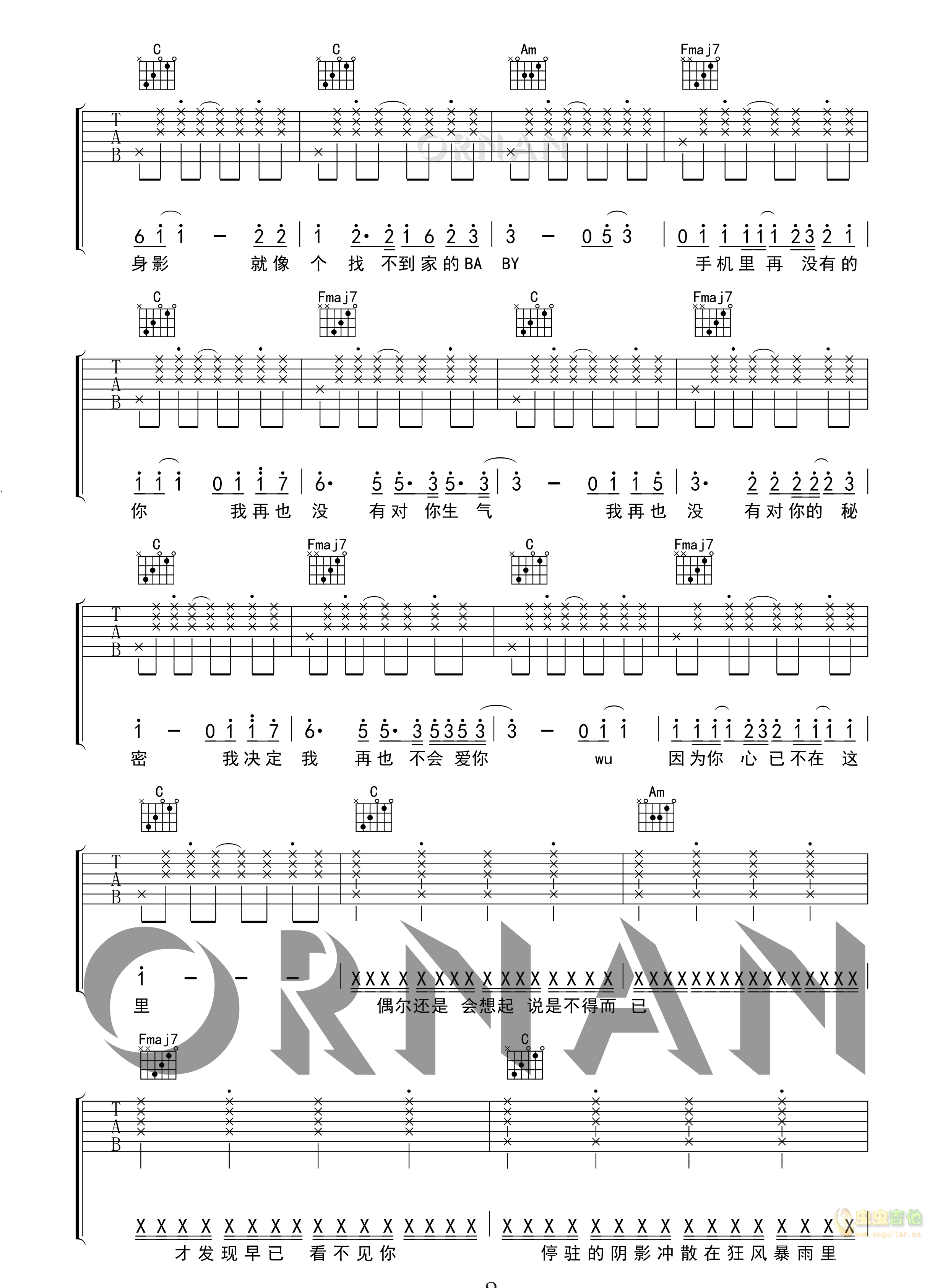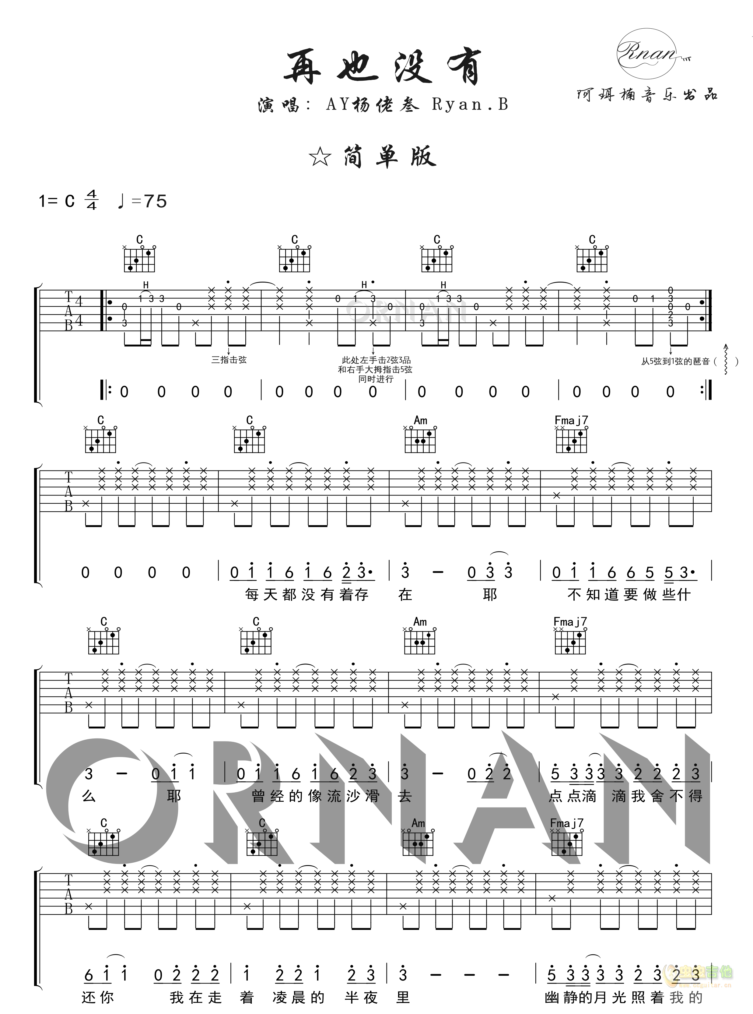 再也没有  Ryan.B 图片吉他谱 - 再也没有 - 吉他弹唱谱
