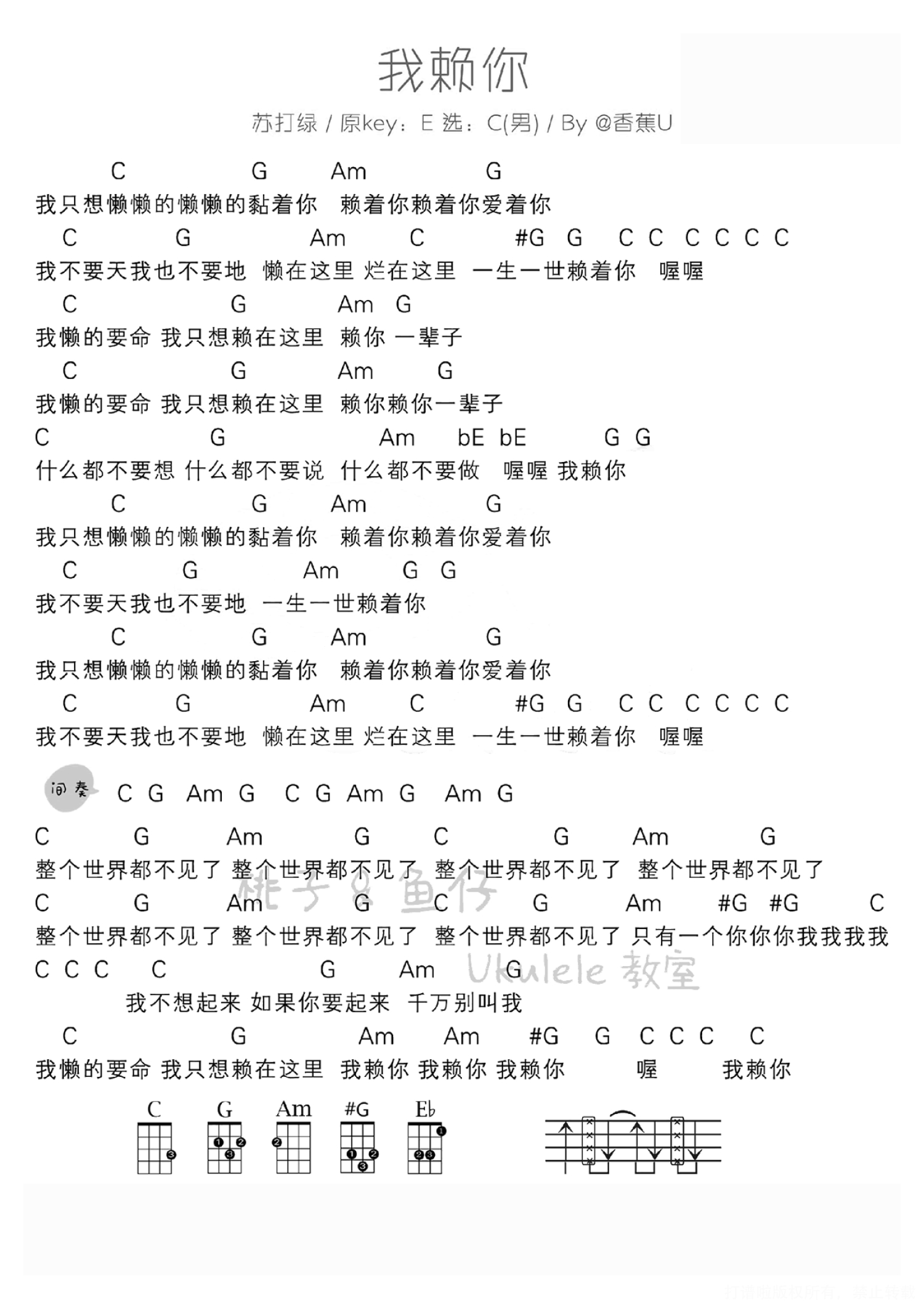我赖你尤克里里谱 - 苏打绿 - 男生版