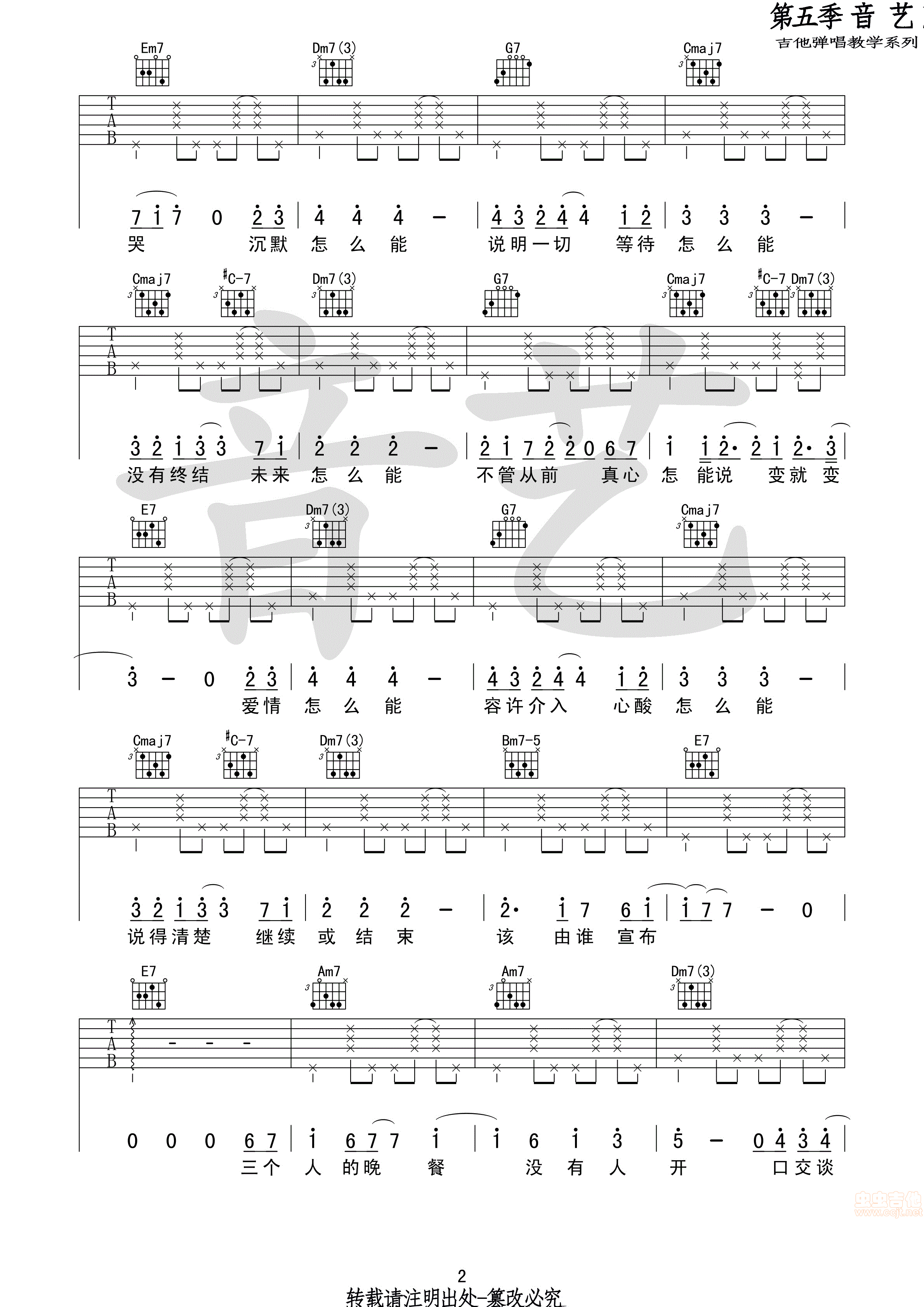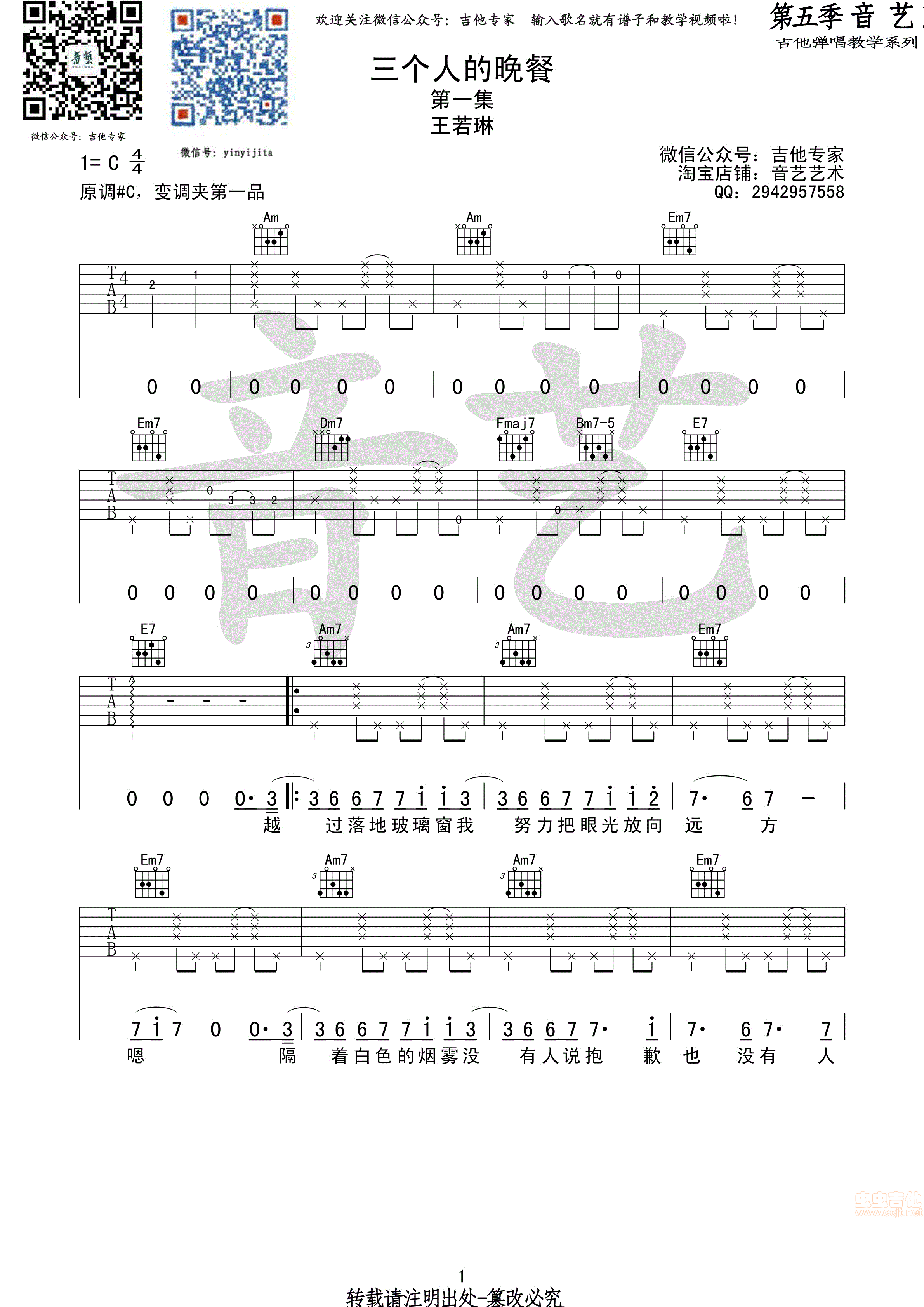 三个人的晚餐 王若琳原版吉他谱 - 三个人的晚餐 - 吉他弹唱谱 - 原版