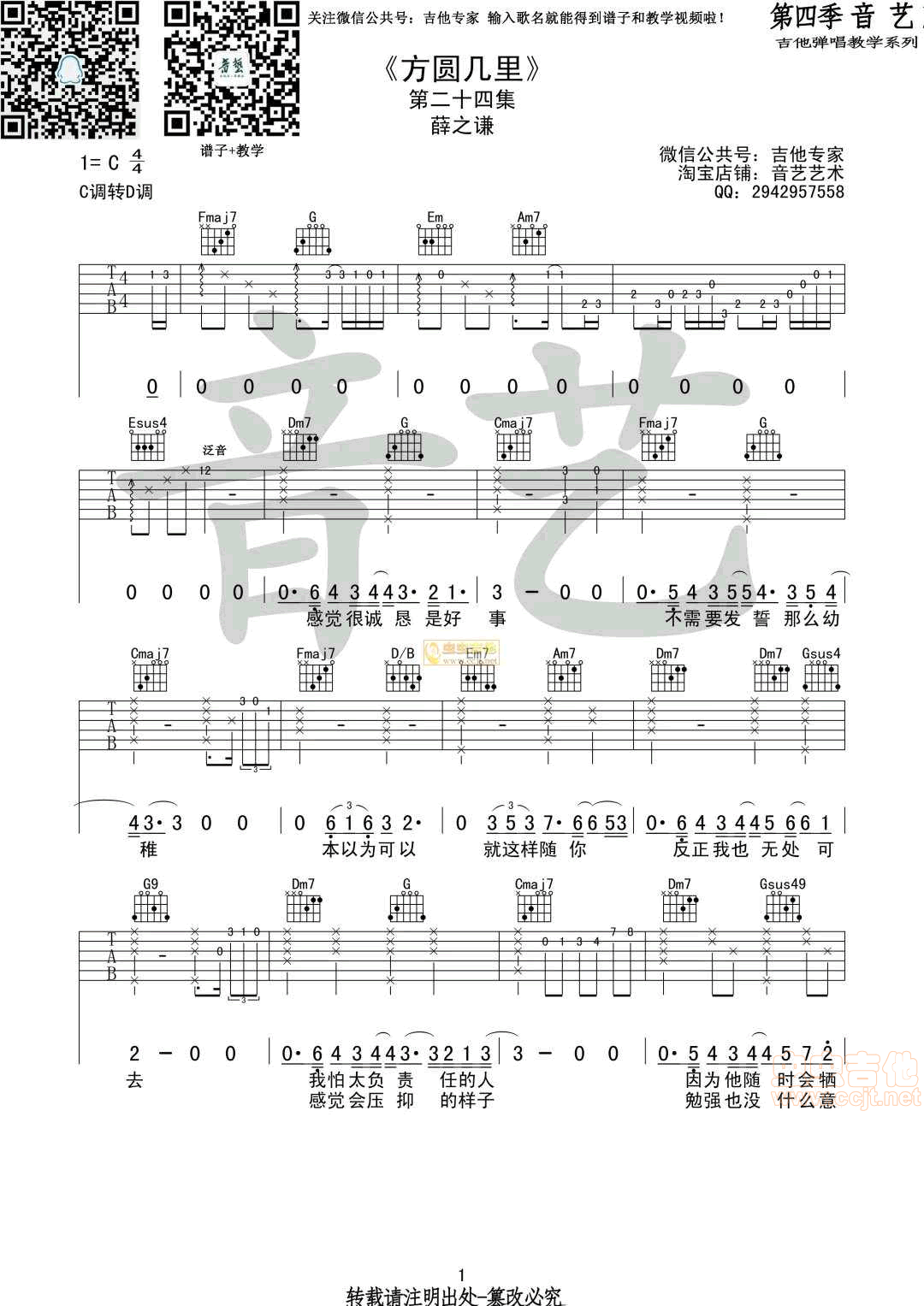 曲谱介绍: 方圆几里《方圆几里原版薛之谦》吉他弹唱谱原版,共有4张高清图谱。