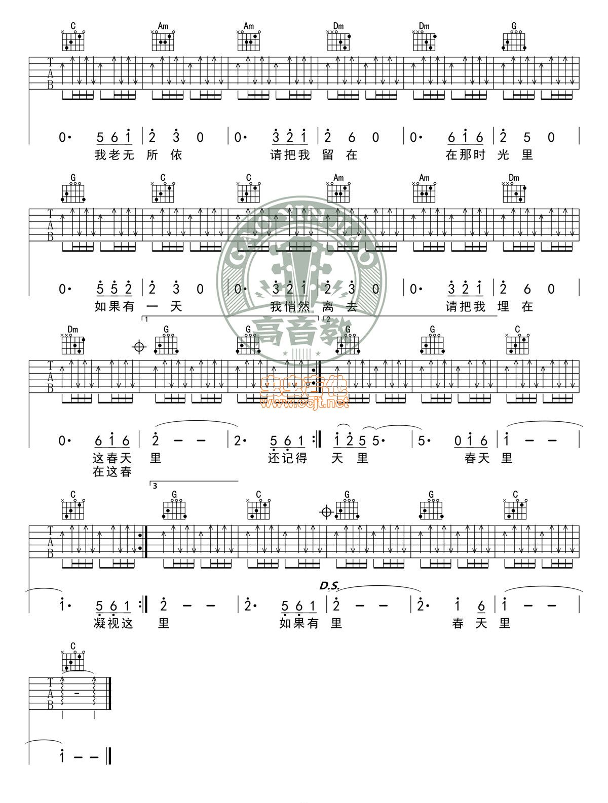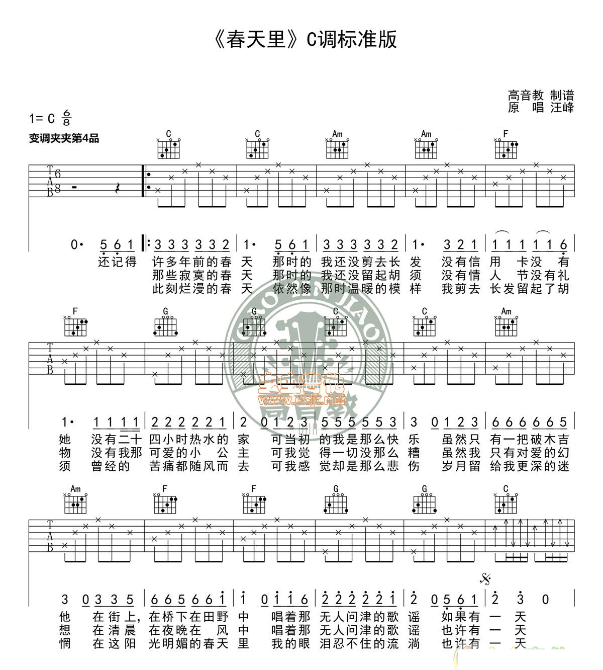 春天里 汪峰 图片吉他谱 - 春天里 - 吉他弹唱谱