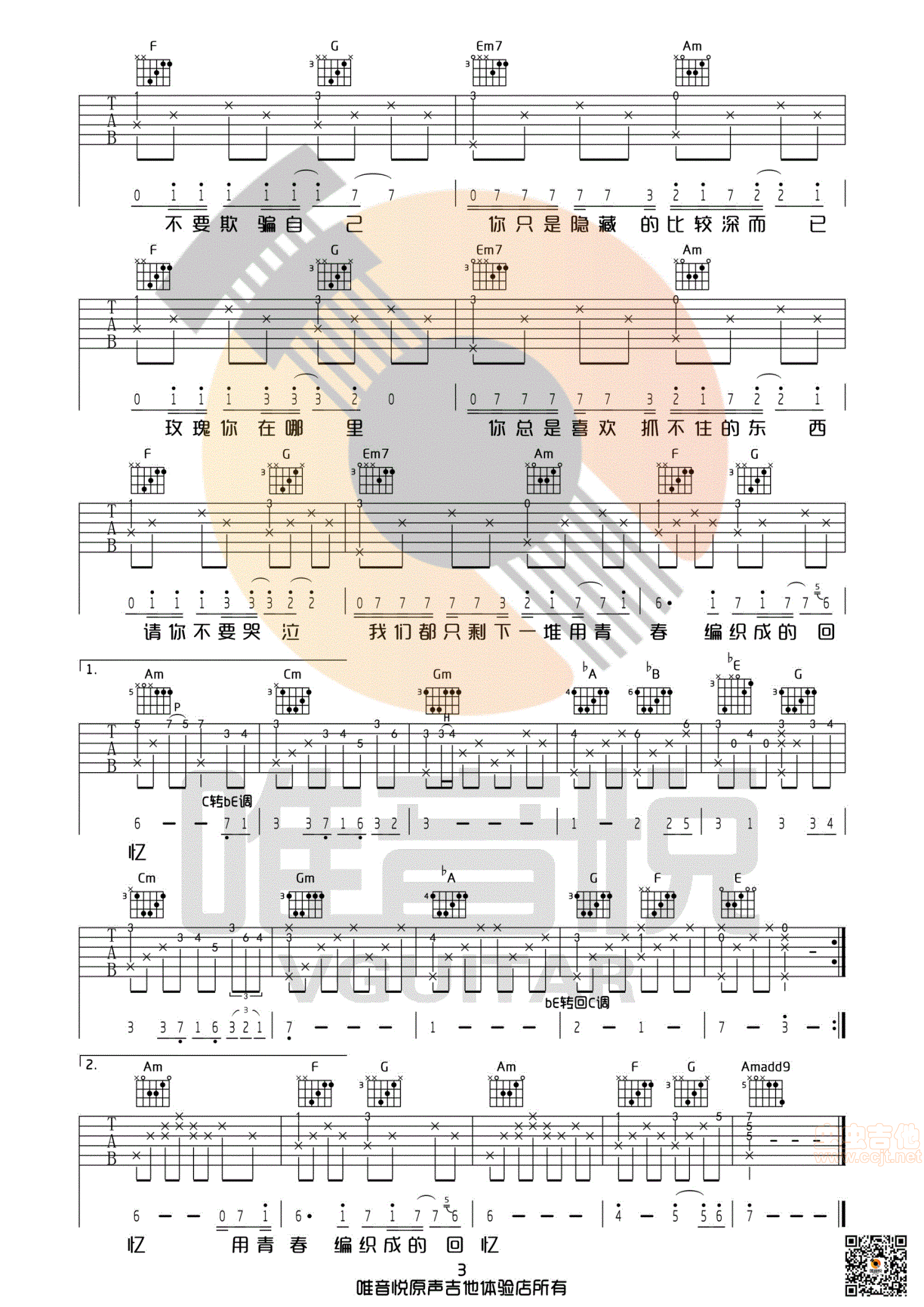 玫瑰 贰佰 C调男生版 唯音悦制吉他谱 - 玫瑰 - C调吉他弹唱谱 - 原版