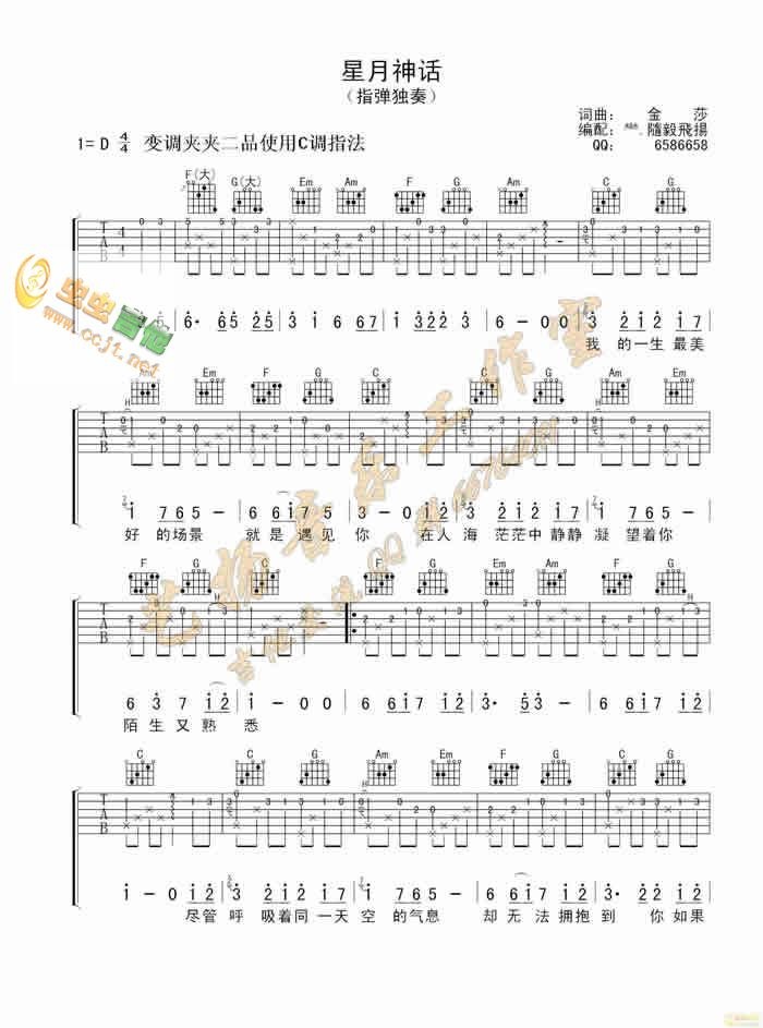 曲谱介绍: 《星月神话》吉他弹唱谱,共有2张高清图谱,免翻页排版设计。