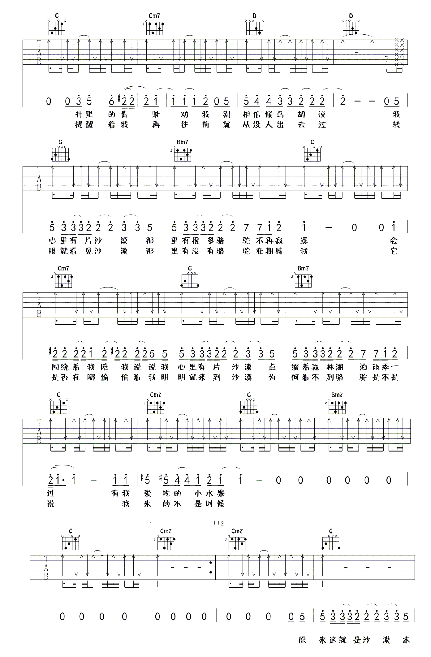 曲谱介绍: 薛之谦《骆驼》吉他谱,原调#G,选用G调指法,变调夹夹一品,整首歌曲扫弦节奏,前奏尾奏也做了简化,这是一首旋律动听的寓言式情歌,唱出每个人内心的那份孤独与渴望。;