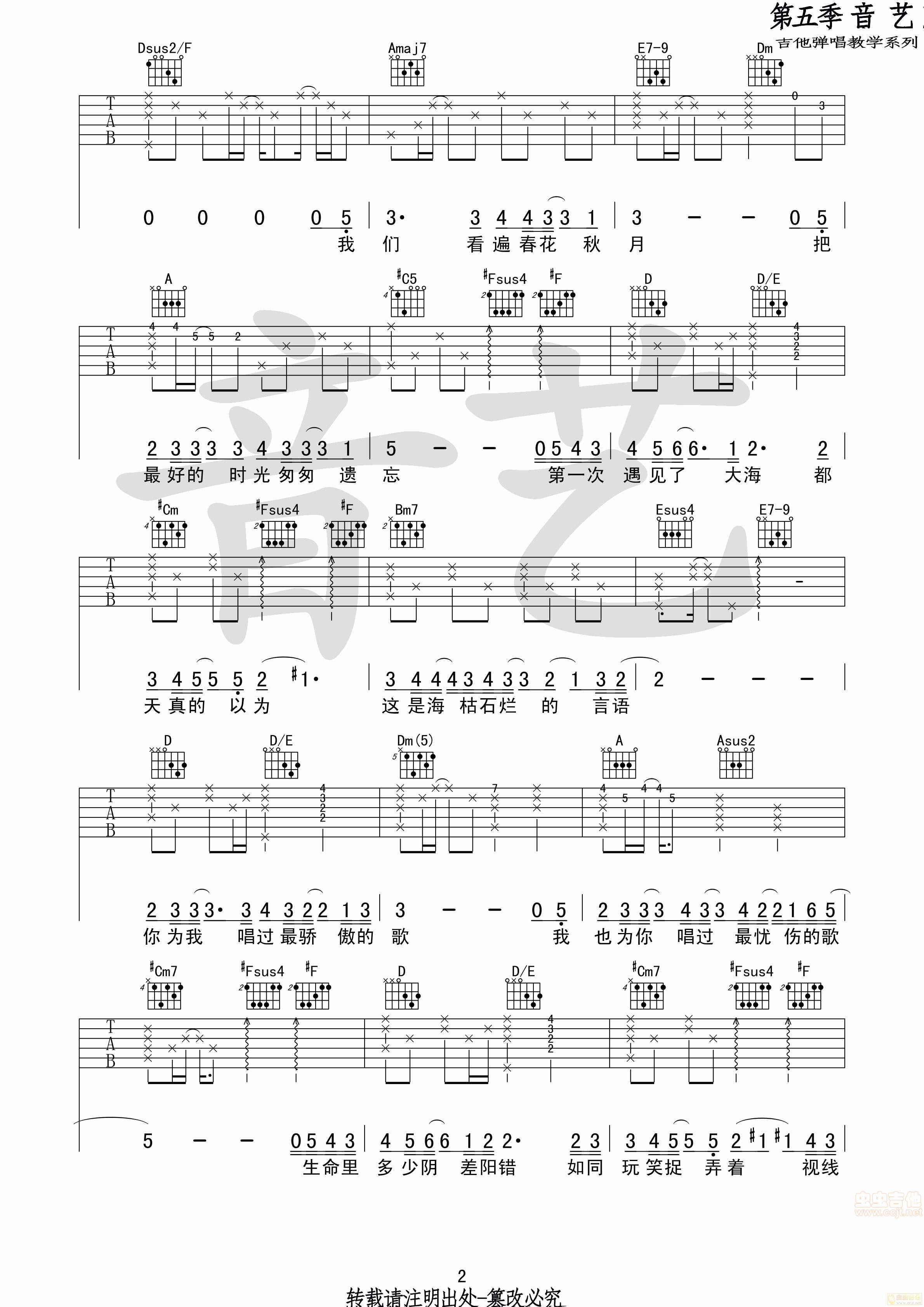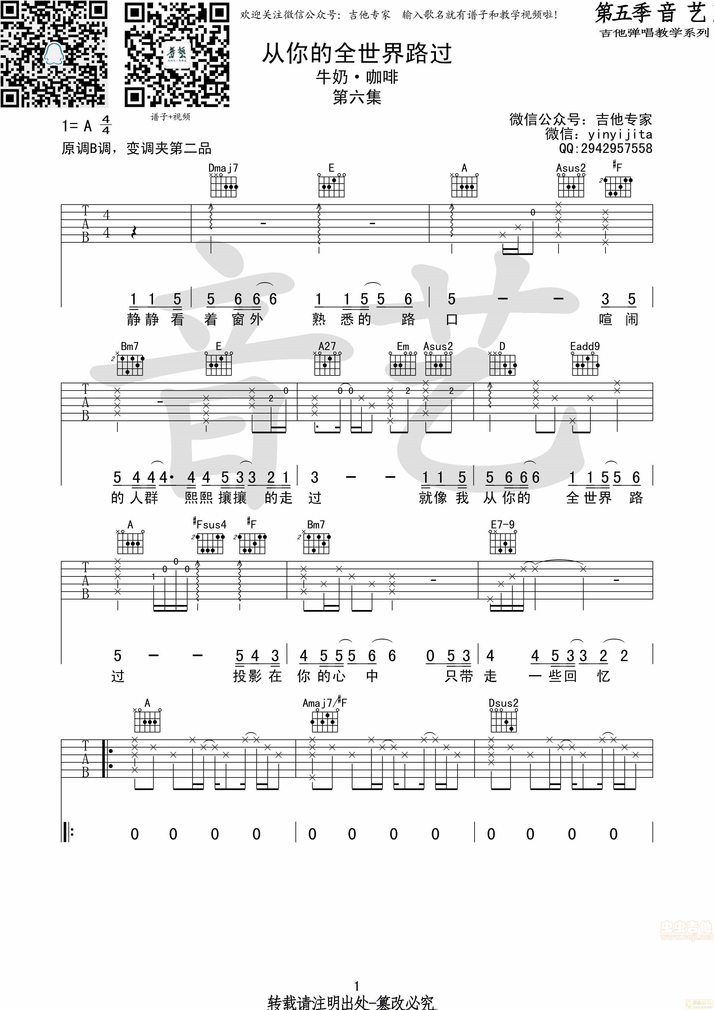 从你的全世界路过 原版吉他谱 - 从你的全世界路过 - 吉他弹唱谱 - 原版