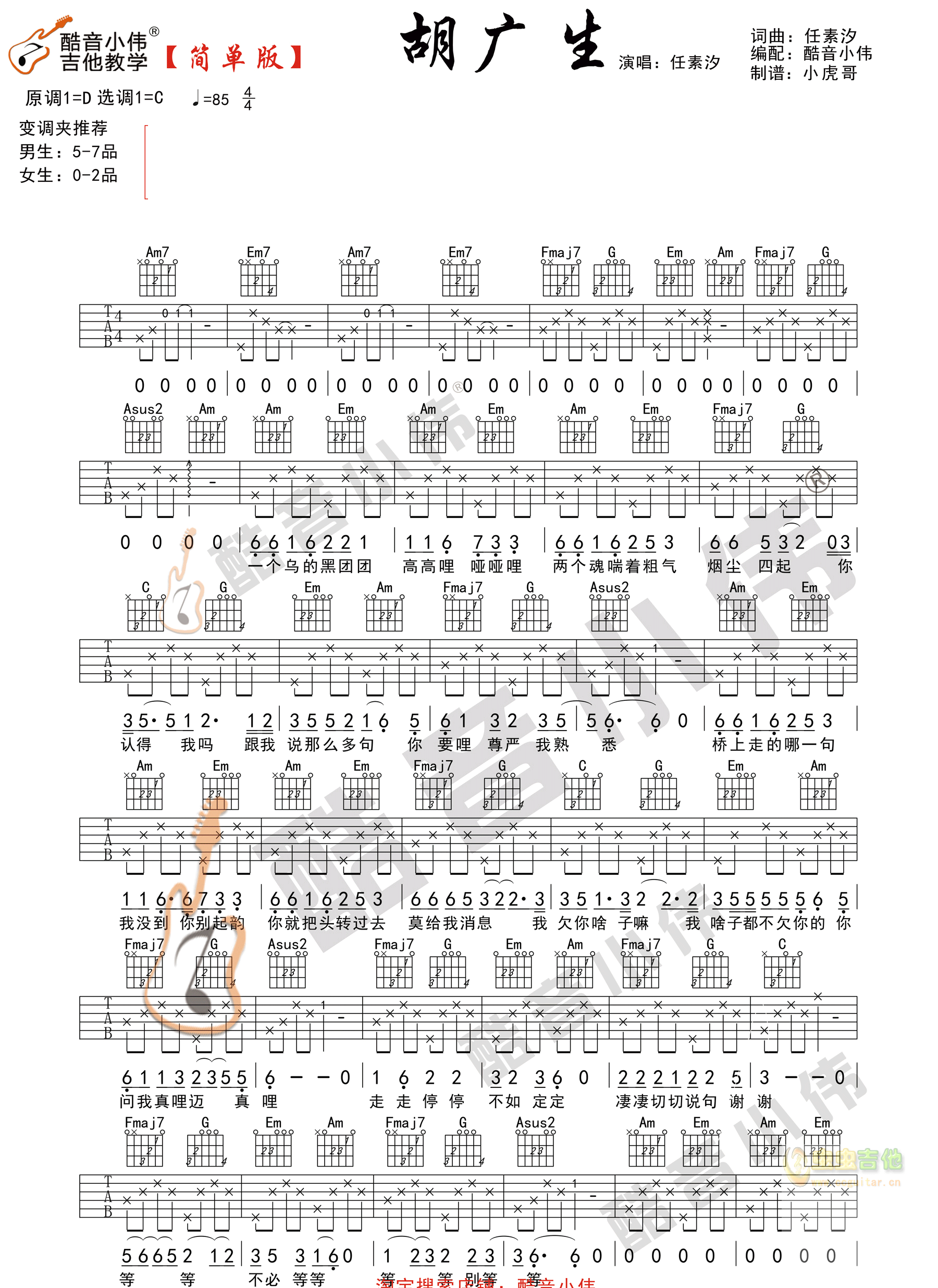 胡广生 任素汐 图片吉他谱 - 胡广生 - 吉他弹唱谱