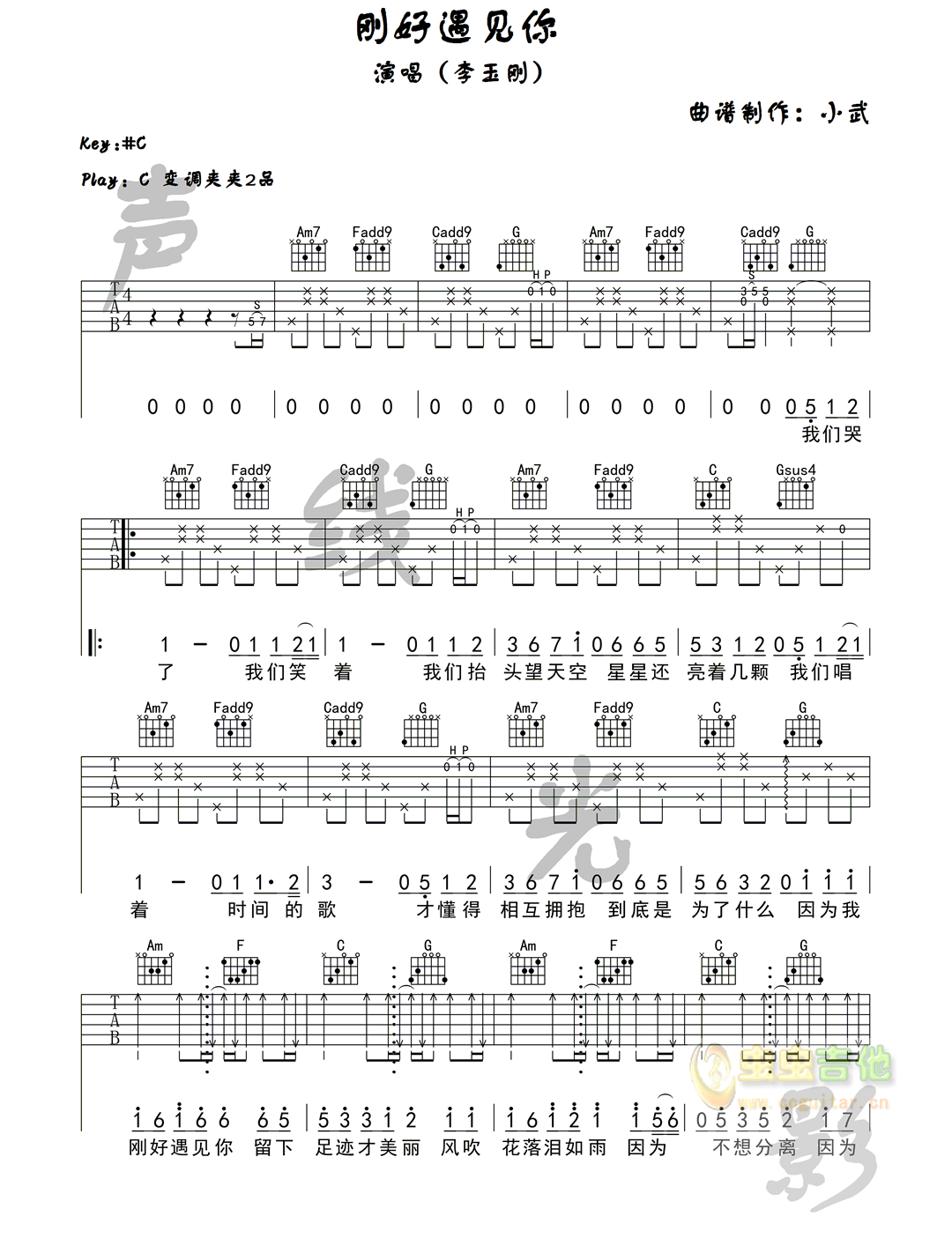 当前位置:琴谱网>吉他弹唱>刚好遇见你 李玉刚 图片