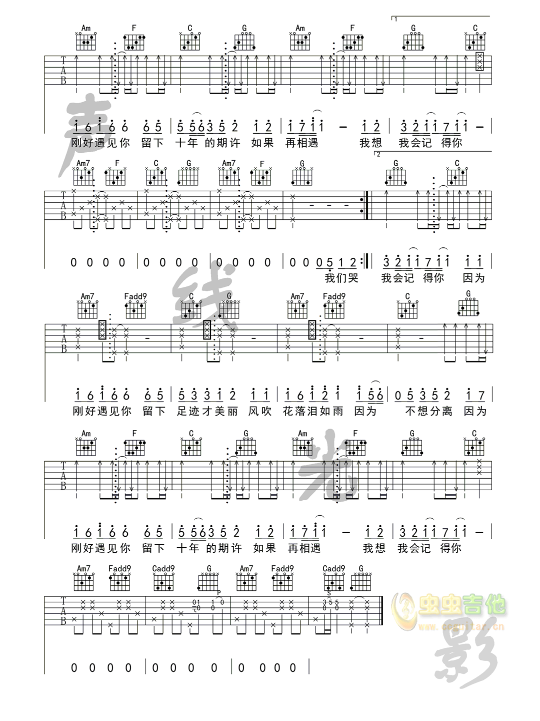 刚好遇见你 李玉刚 图片吉他谱 - 刚好遇见你 - 吉他弹唱谱
