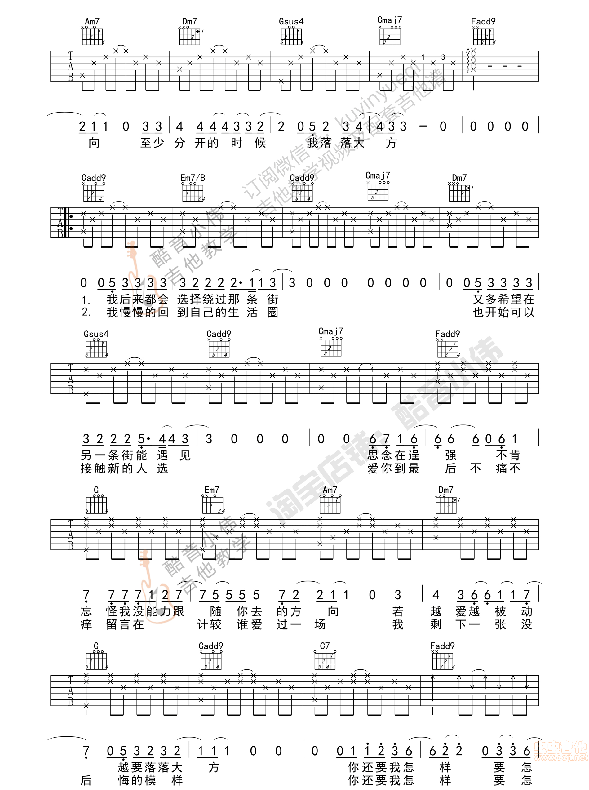 当前位置:琴谱网>吉他弹唱>你还要我怎样 薛之谦 图片