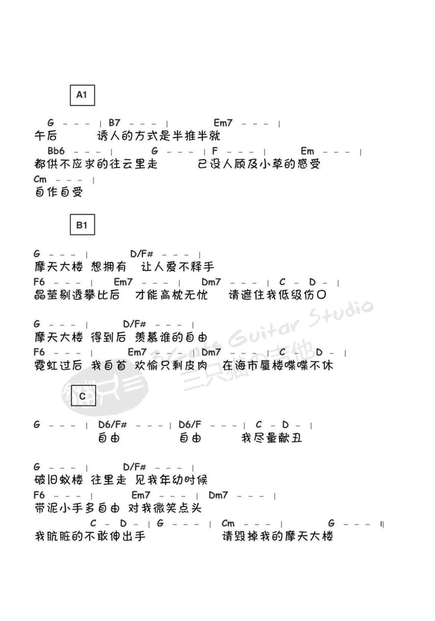 当前位置:琴谱网>吉他弹唱>摩天大楼