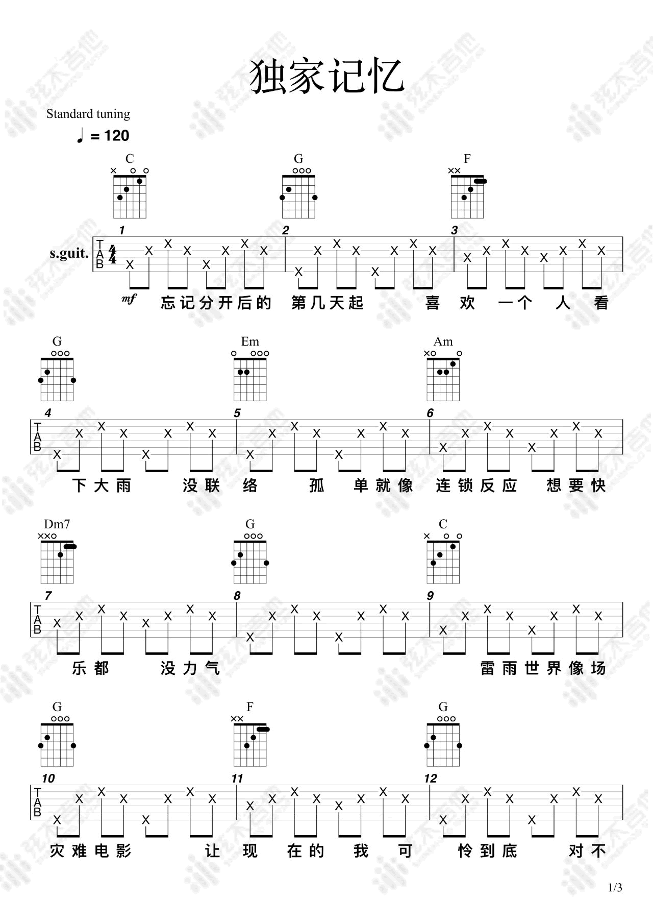 当前位置:琴谱网>吉他弹唱>独家记忆