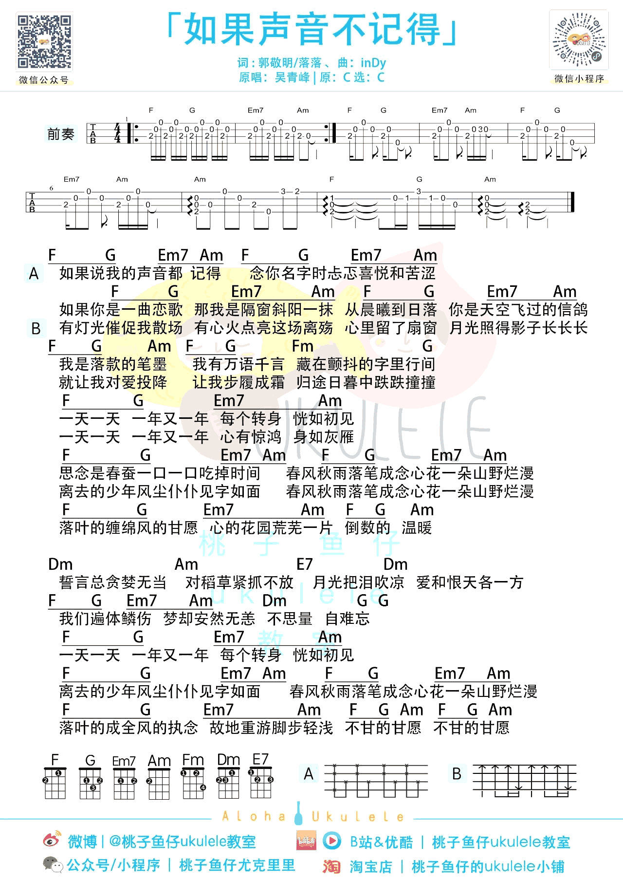 曲谱介绍: 吴青峰《如果声音不记得》吉他弹唱谱,共有2张高清图谱,免翻页排版设计。