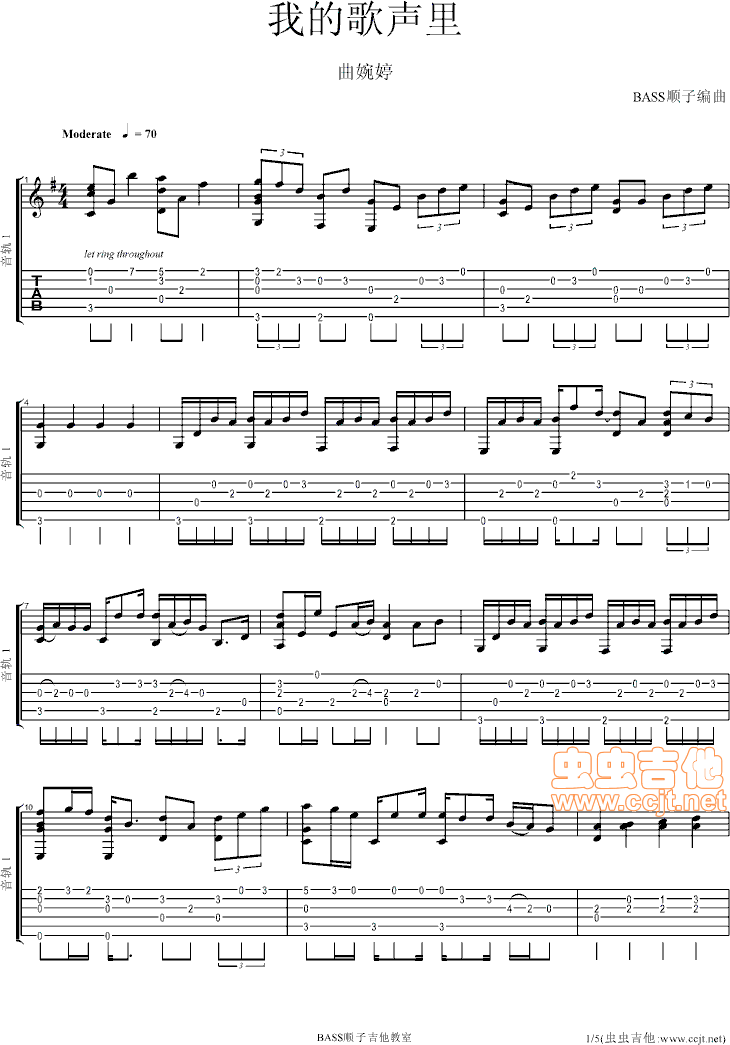 我的歌声里(BASS顺子版)吉他谱 - 吉他弹唱谱